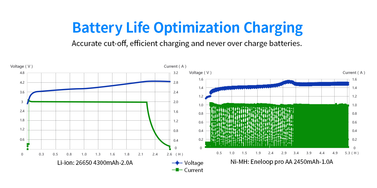 - Includes battery repair features such as 0V activation and memory-effect elimination.