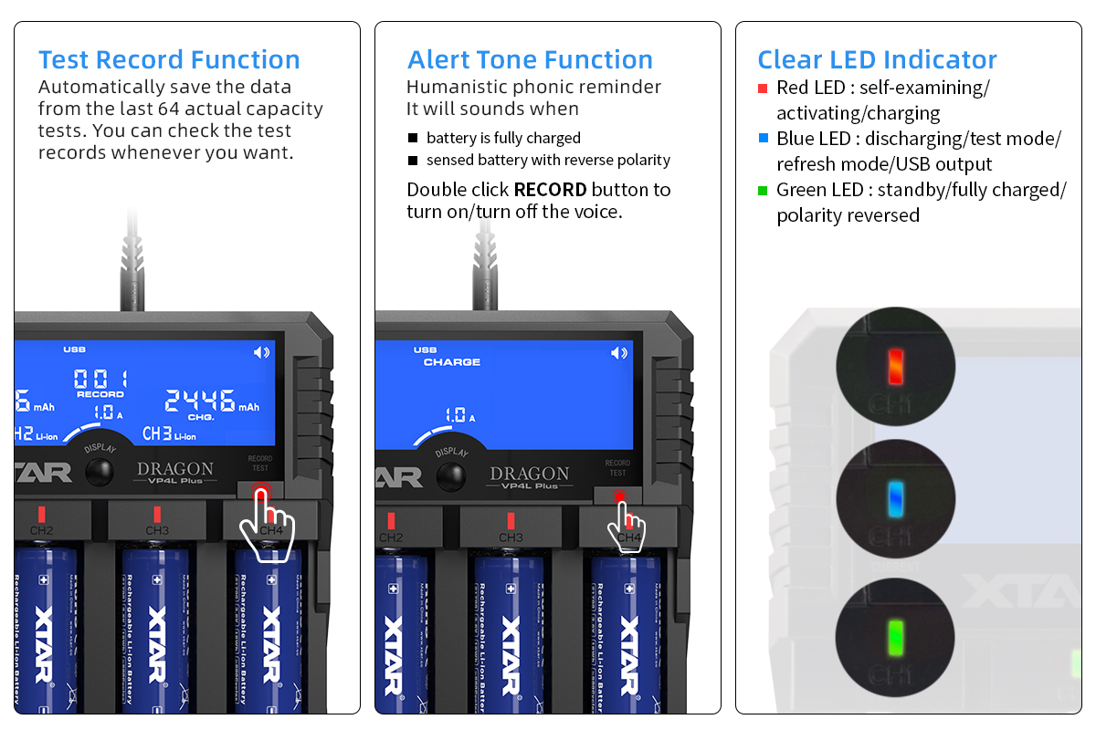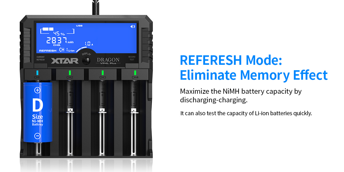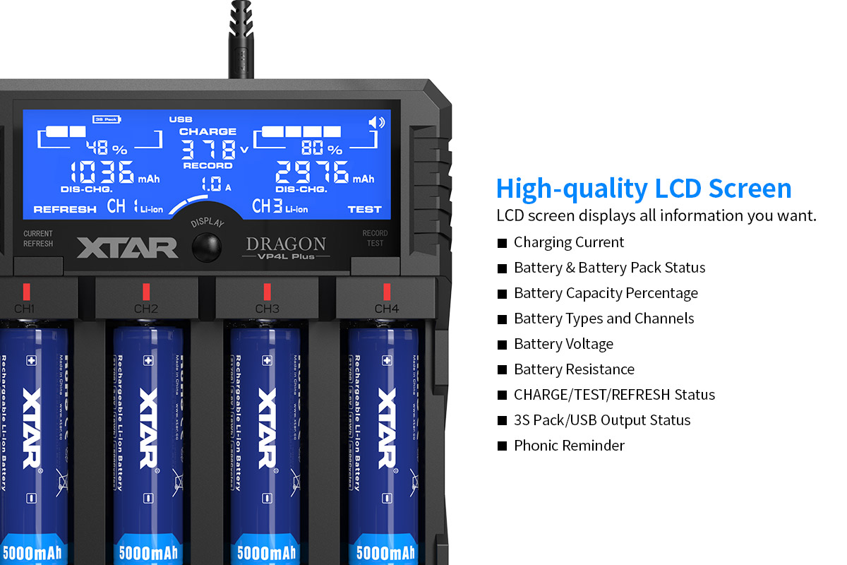 XTAR DRAGON VP4L Plus 4-Slot Smart Battery Charger and Battery Doctor