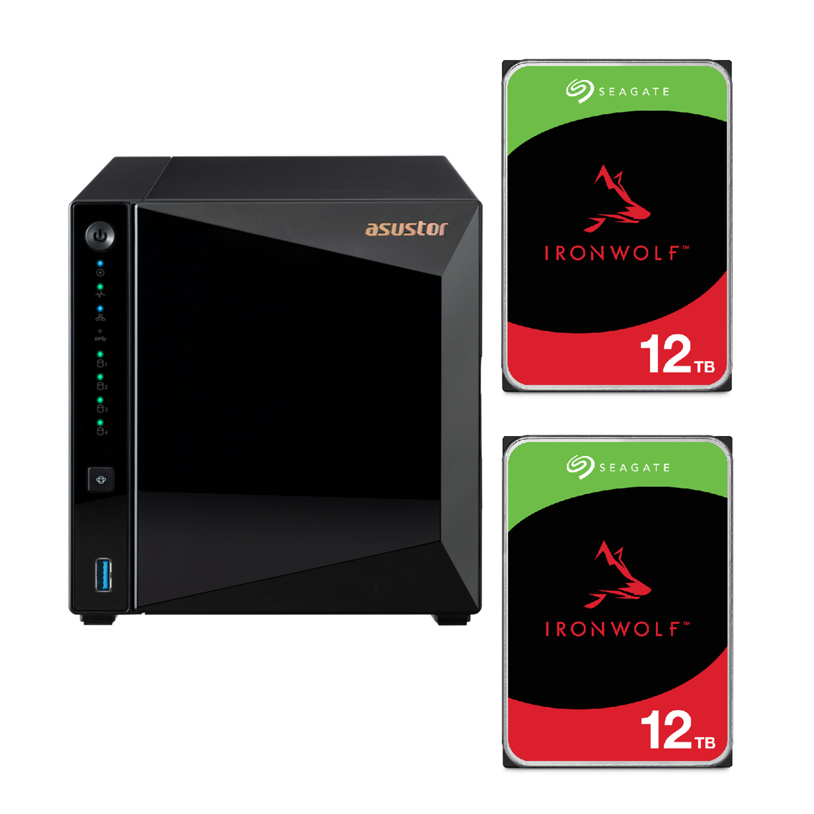 Asustor Drivestor 4 Pro AS3304T v2 4-Bay NAS with 2x 12 TB NAS HDD Bundle