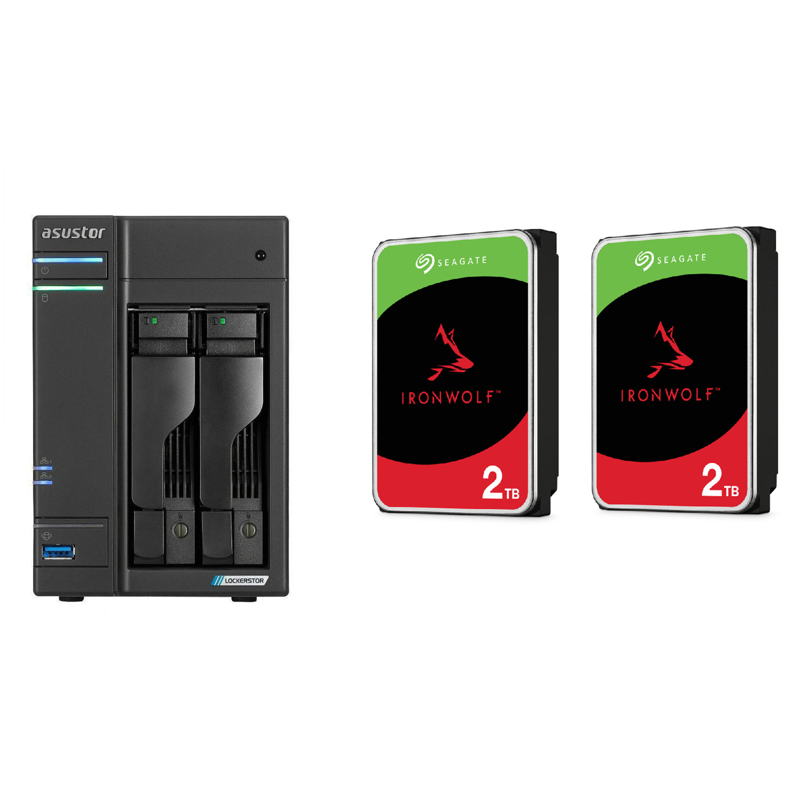 Asustor Lockerstor 2 Gen 2 AS6702T 2-Bay NAS With 2x 2TB NAS HDD Bundle