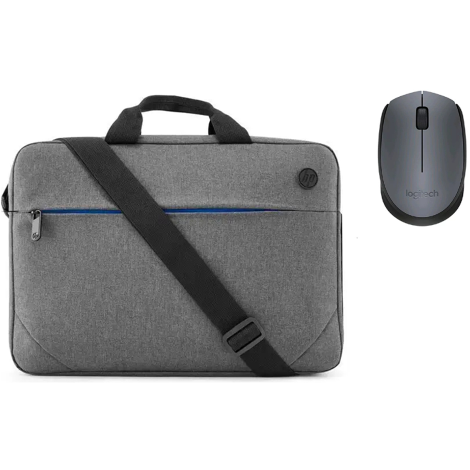 HP Prelude and Logitech M171 Wireles Mouse Bundle - Grey Carry Laptop Bag