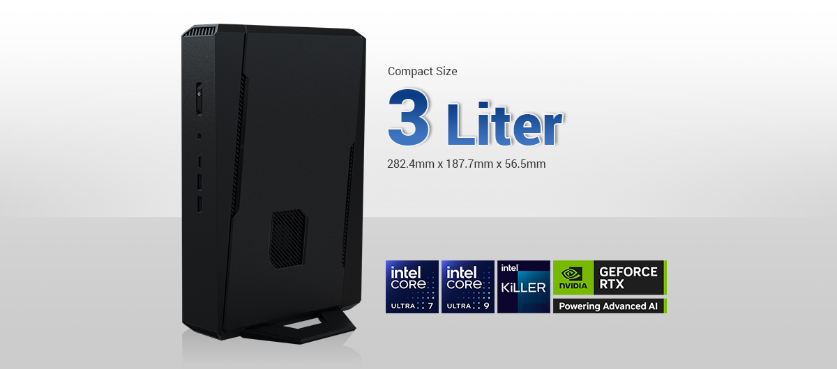 Experience elite performance with Intel® Core™ Ultra CPUs and NVIDIA® graphics in a compact 3L chassis - featuring quiet-flow cooling, military-grade durability, and lightning-fast Wi-Fi 7.