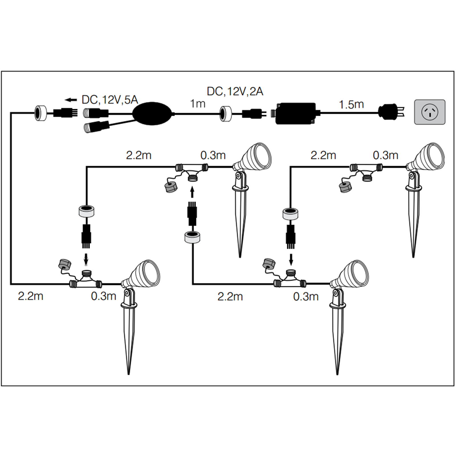 - Transformer x 1 with 1.5m cord/plug, 240V/12V 2A 24W IP68.