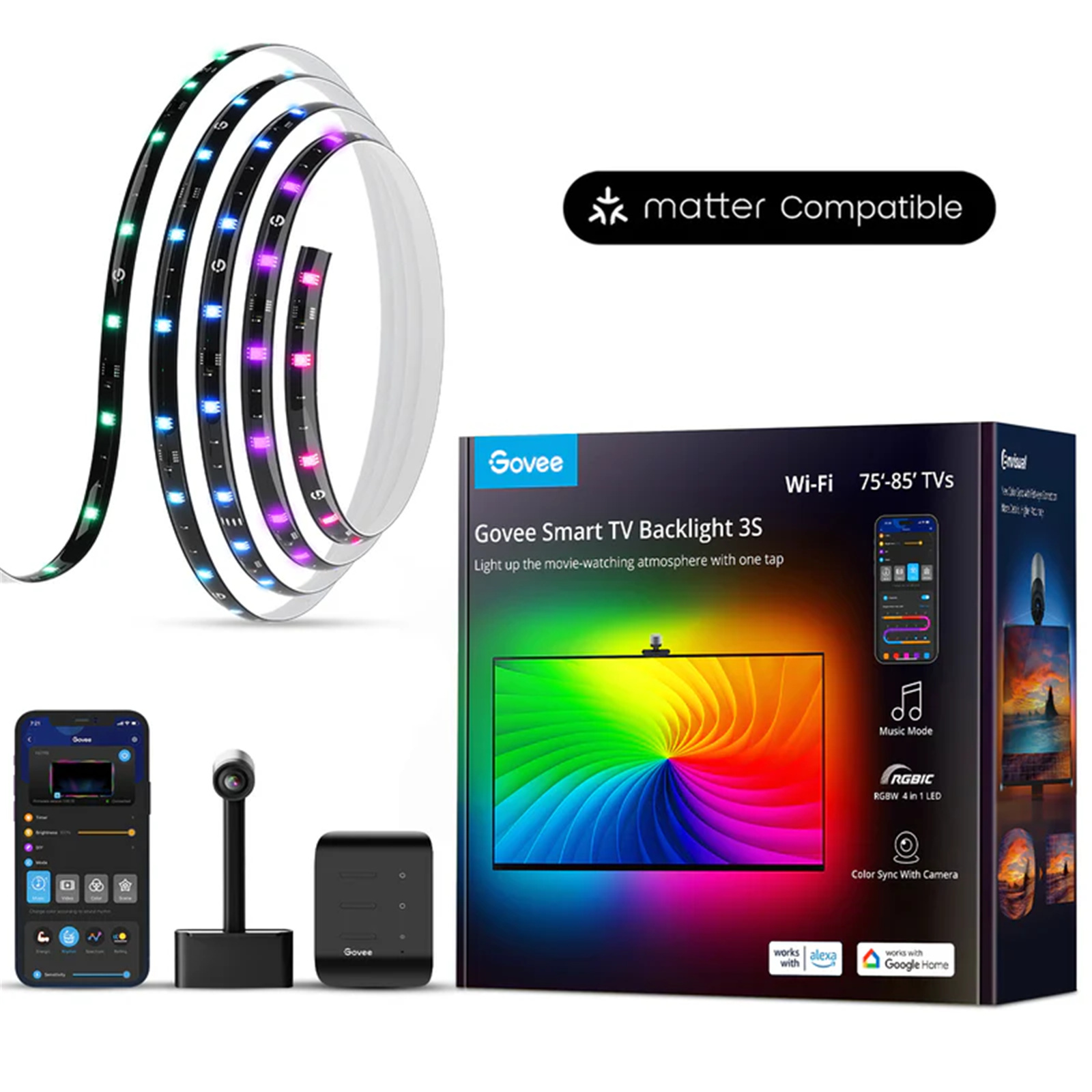 Govee 3S Smart TV Backlight Kit for TV size (75"-85") Matter Supported, Ultra-Thin TV Screen Compatibility,DreamView Syncing