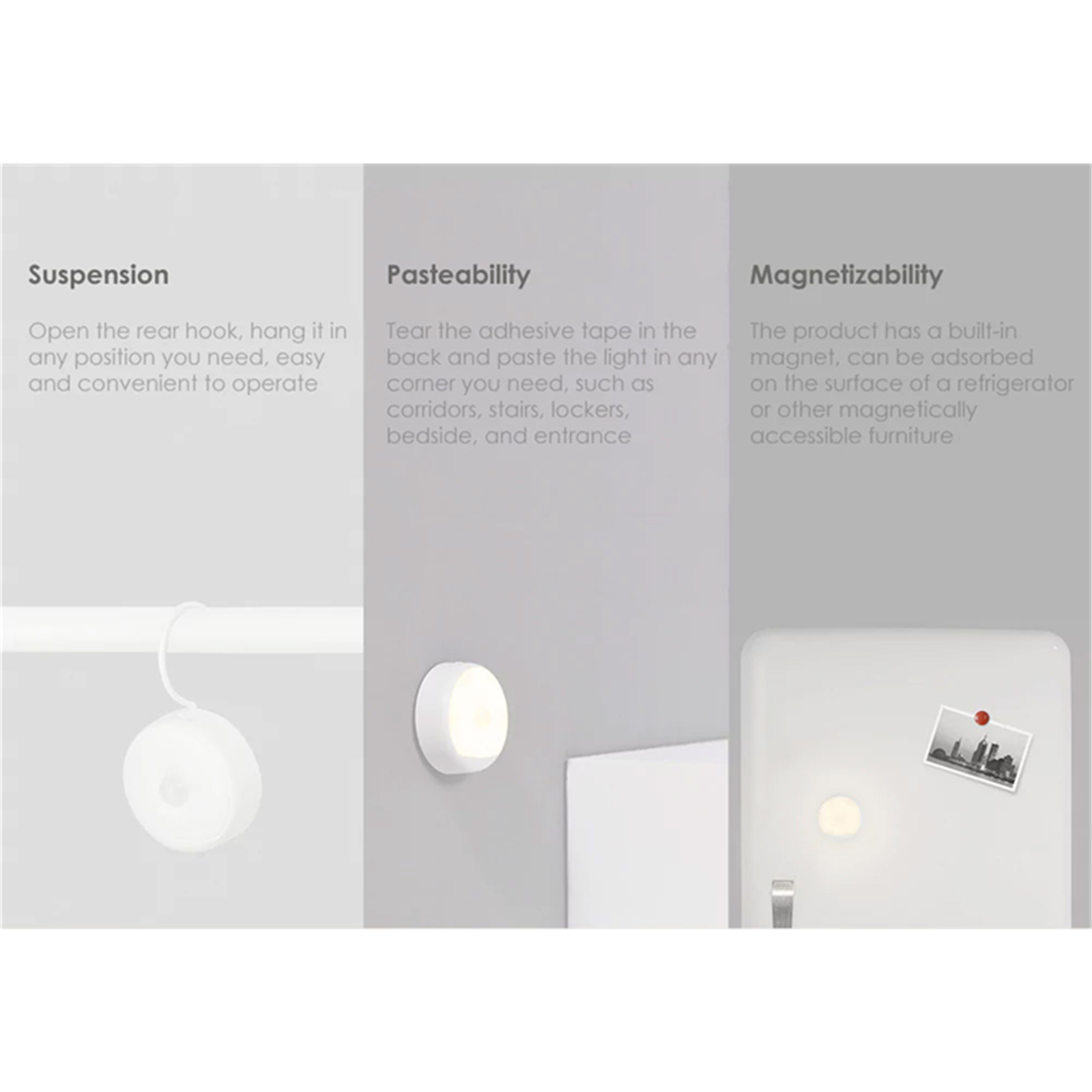 Yeelight Motion Sensor Nightlight 3.5-7 Lumens, USB Powered, 120 Days of Usage, Suspendible, Adhesive, Magnetic, Dual Sensors