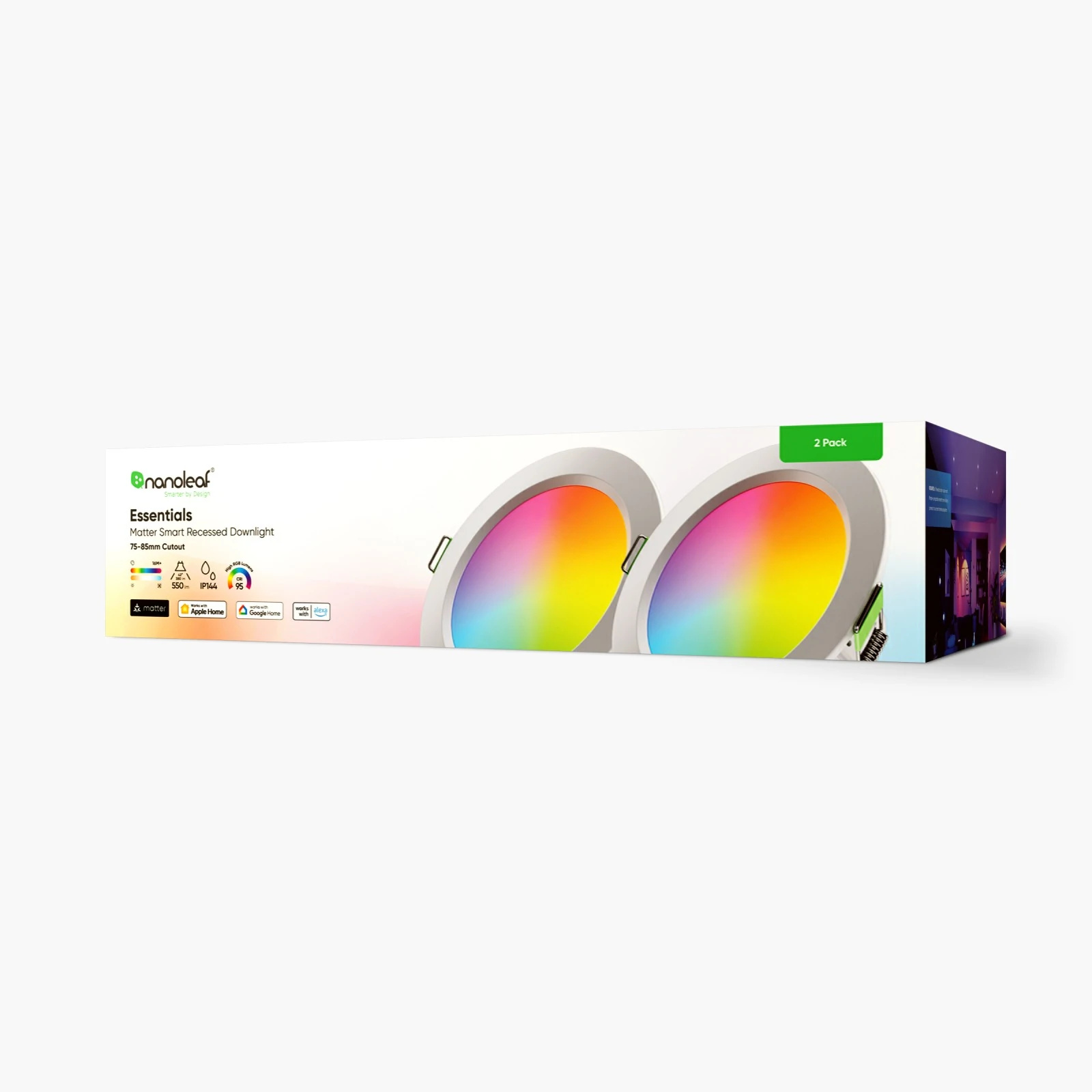 Nanoleaf Essentials Matter WiFi LED RGB Smart 3.5" Downlight (2 Pack) for Cutout: 90mm Max Lumens 900lm, RGB, Colour adjustable and Dimmable Remote Control Enabled, 2 Years Warranty