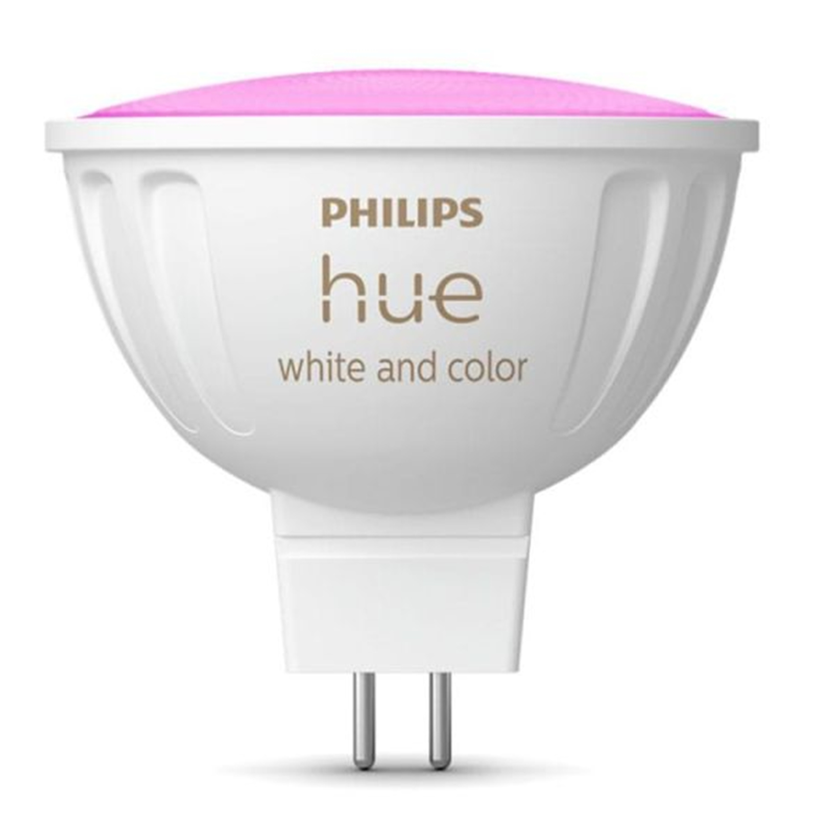 Upgrade your conventional spots with Hue MR16. Featuring a 12 V, bi-pin design suitable for most existing fittings, this MR16 bulb enables you to bring color smart light to every corner of your home. Compatible with most transformers.