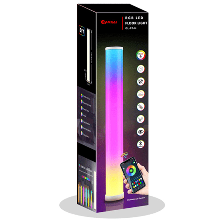 The RGB color changing floor lamp with high brightness 60 LED leads, the brightness and the speed of lighting style are both adjustable.
