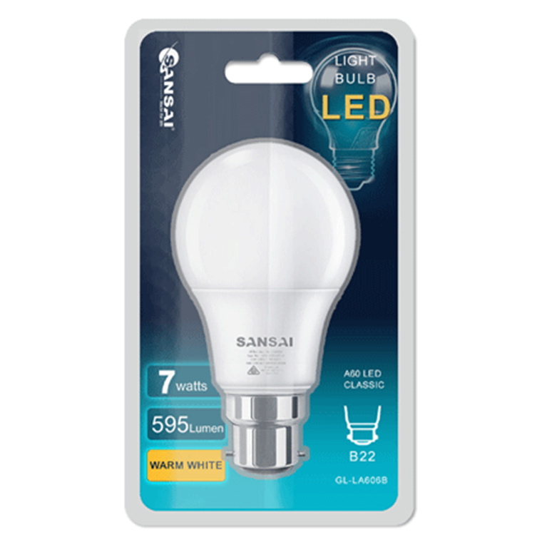 Sansai GL-LA606B LED Bulb A60-7W-B22-Warm White