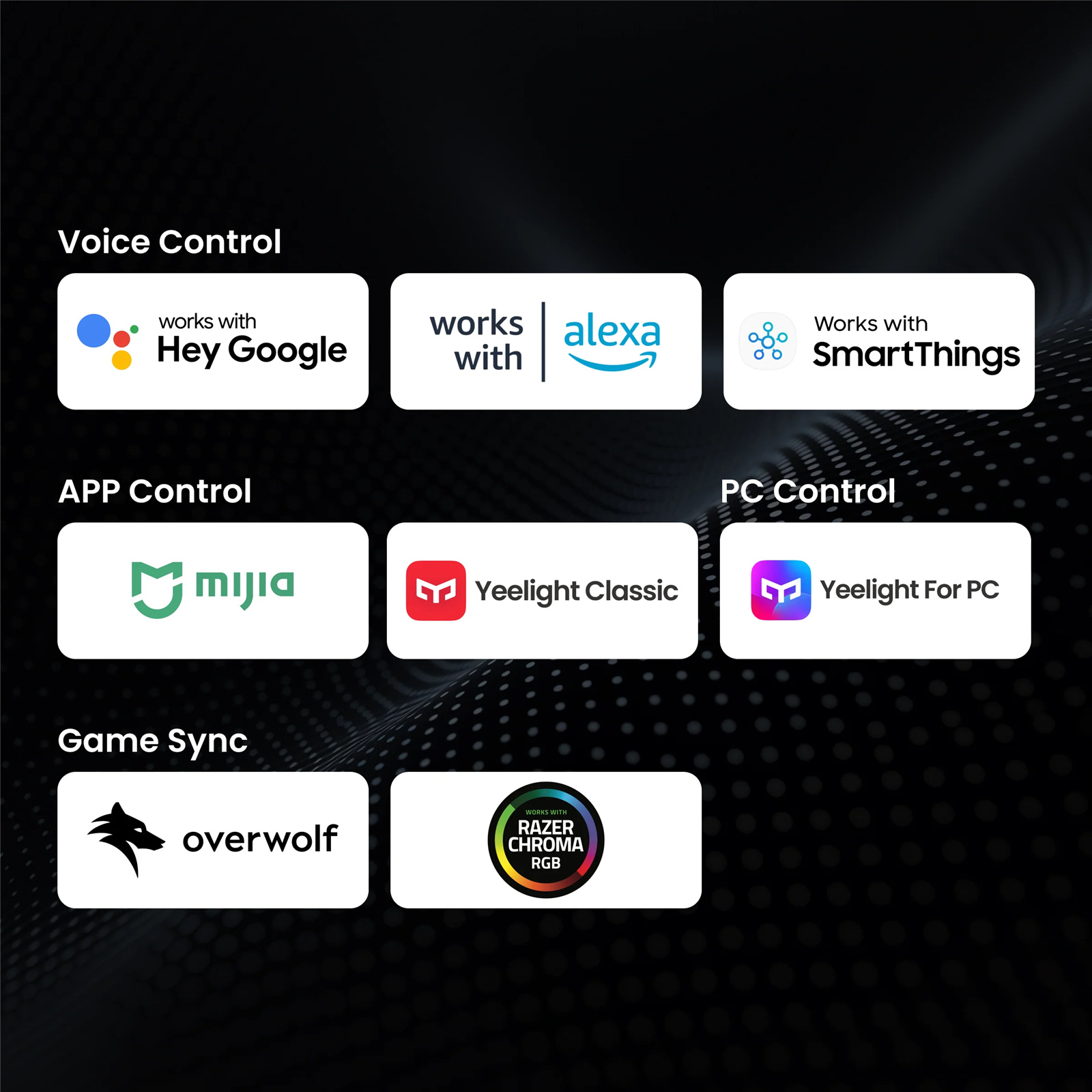The monitor light bar works well with Google Assistant, Amazon Alexa, and Samsung SmartThings. It can be easily managed by voice or a touch on the screen.