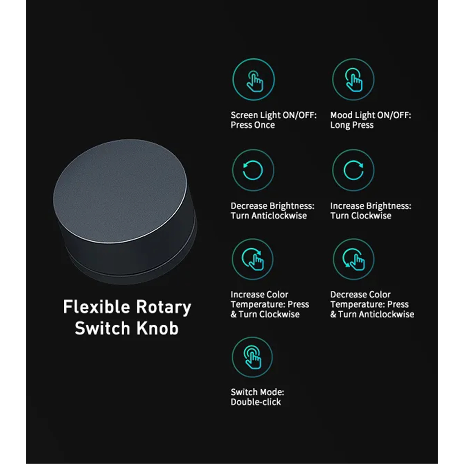The monitor light bar is equipped with a remote rotary knob, which allows you to switch conveniently between game lighting and office lighting. Brightness and color temperature can also be easily adjusted by turning the knob.