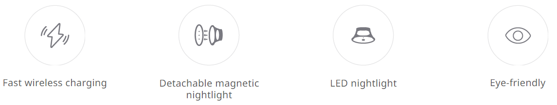 The nightlight has multiple built-in features to ensure safety when in use. The motherboard is designed to handle excessive current and voltage. The charger pad automatically turns off upon contact with foreign metallic items such as keys or scissors.