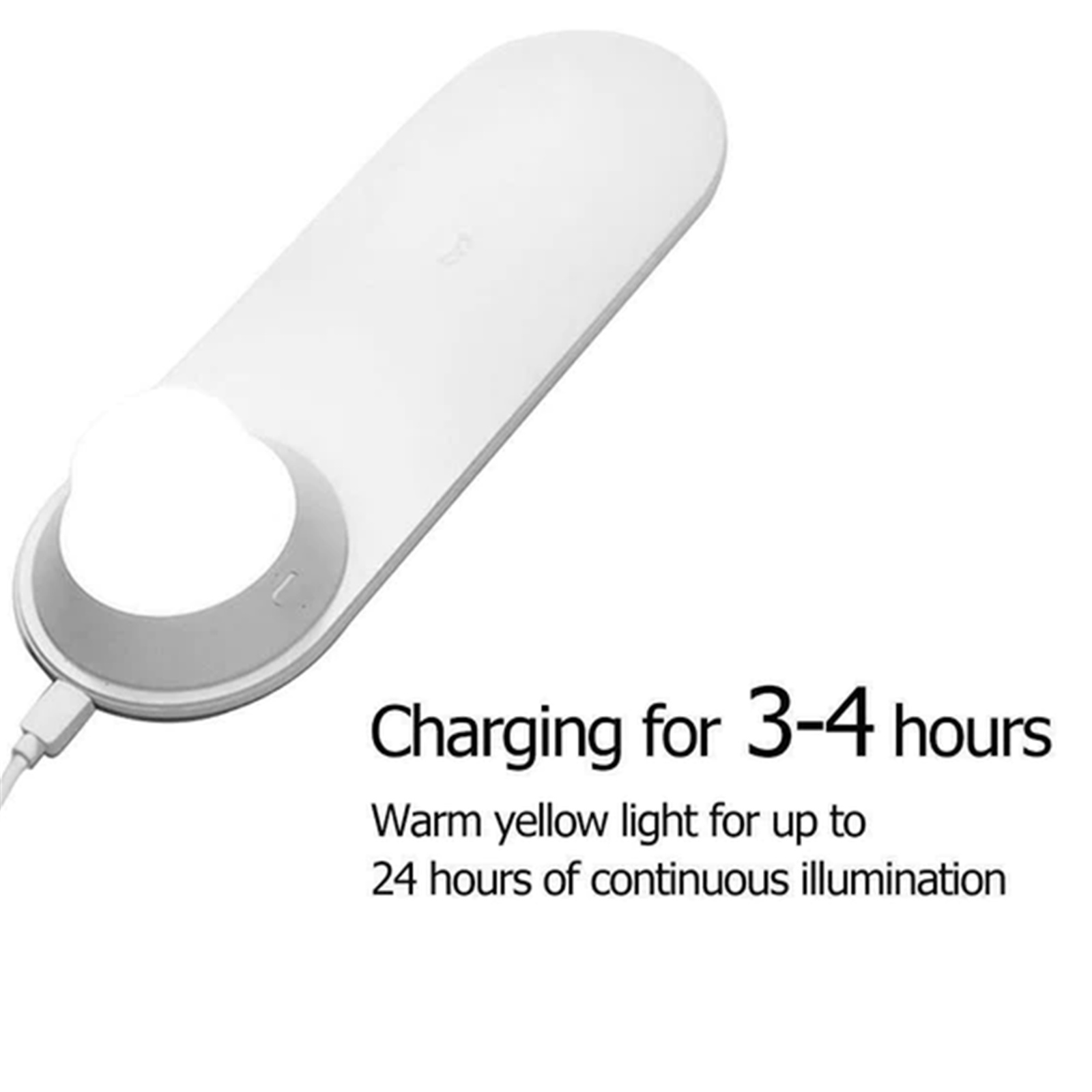 Yeelight Wireless Charging Nightlight - Super Fast Wireless Charging Eye-friendly Warm Lighting, The nightlight takes 3 to 4 hours to fully charge, providing up to 11 hours of white light or 24 hours of warm light
