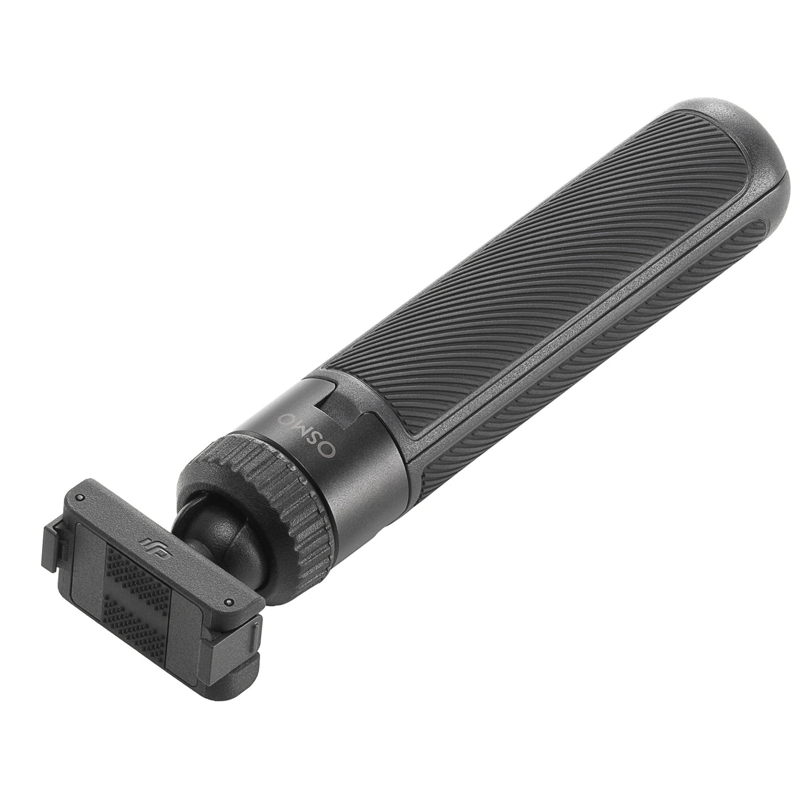 Palm-sized in storage. It can extend to four sections. Comfortable to hold for a long time when shooting recreational sports or vlogs. The built-in tripod on the bottom can keep the device securely in place for stable shooting. Ball-joint design on the top makes angle adjustment quick and convenient.