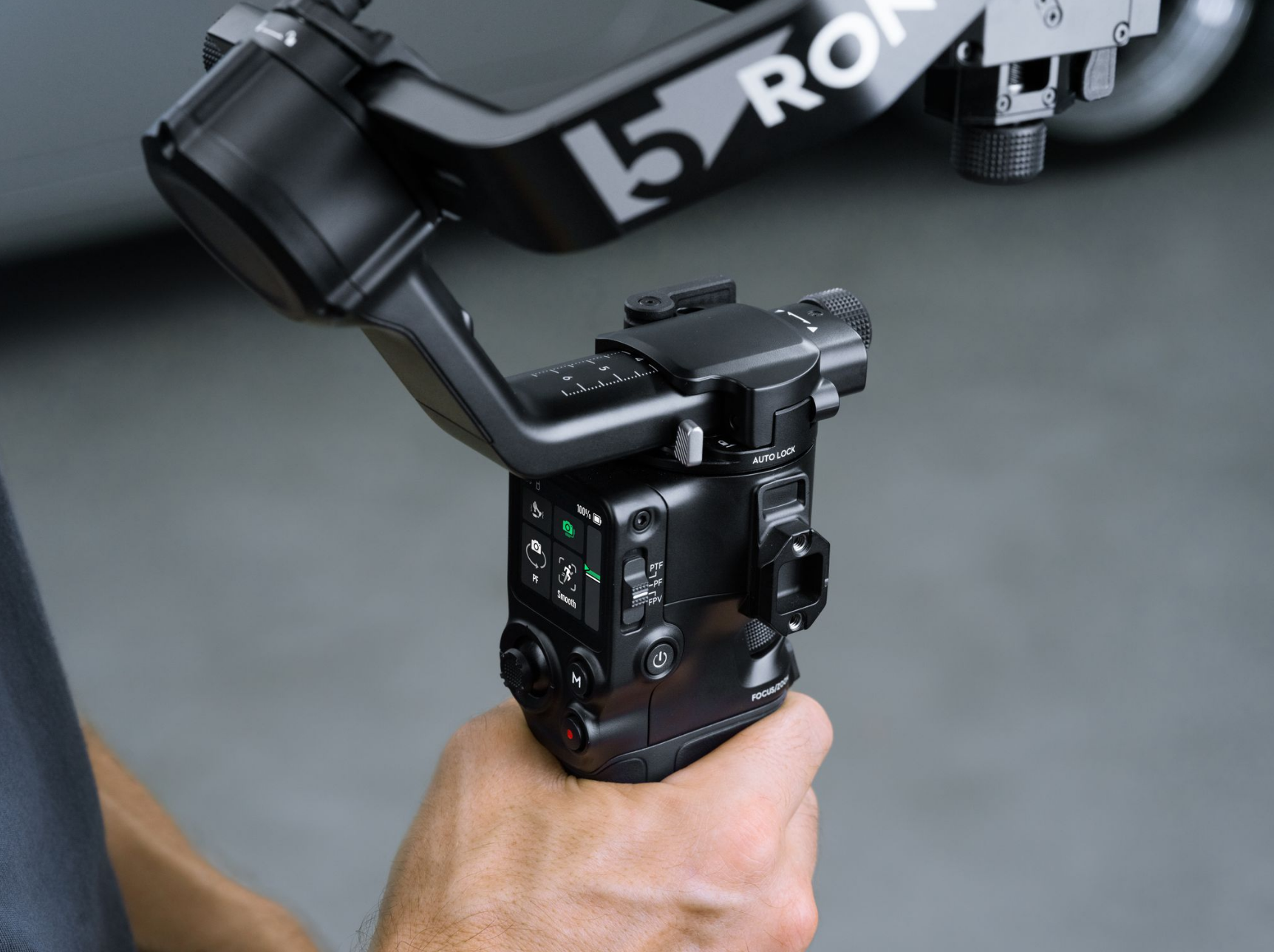 When paired with two Focus Pro Motors [5], RS 5 allows cinematographers to adjust the lens zoom via the joystick and precisely control the focus via the dial, facilitating smooth and effortless lens control.