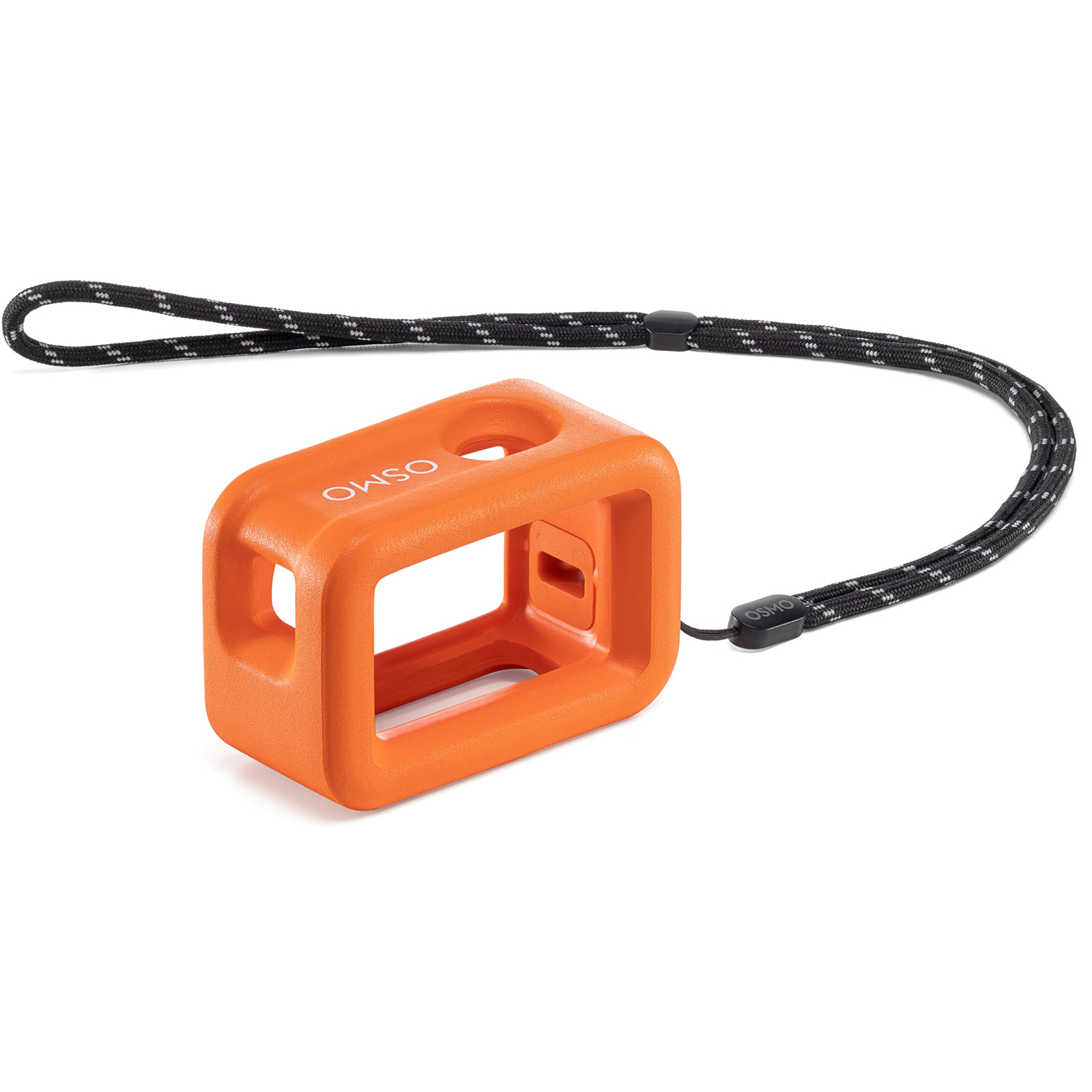 The Osmo Action Floating Case wraps around the action camera, and comes with a lanyard for added security. Even if the camera accidentally falls in the water, it will float to the surface and is easy to find thanks to the bright orange appearance.