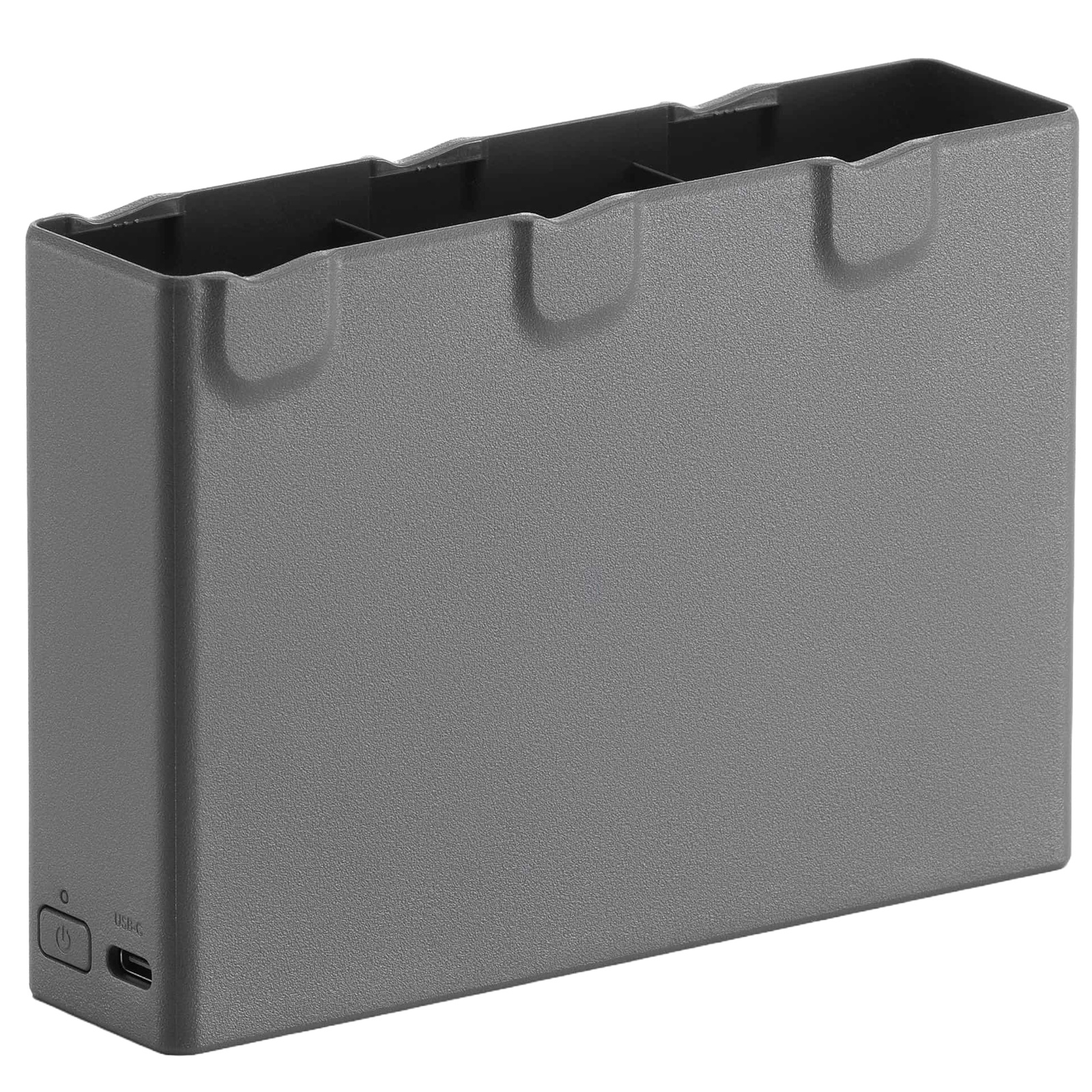 Provides storage, charging, and power accumulation for batteries. Paired with the DJI 65W Portable Charger, it can fully charge an Intelligent Flight Battery in only 45 minutes. It can sequentially charge three batteries at a time, eliminating the hassle of charging batteries one by one. It can also serve as a mobile power bank to charge devices like the DJI Goggles and smartphones.