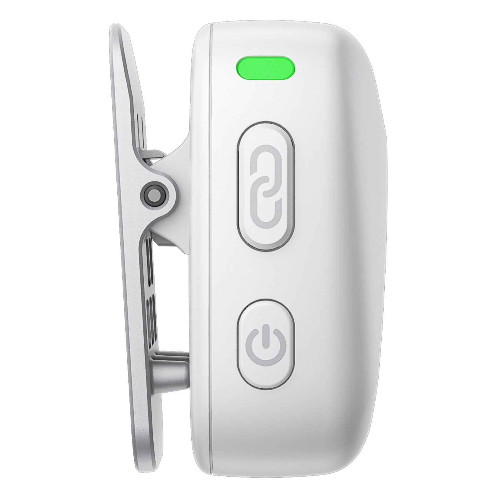 The DJI Mic Mini Transmitter is a white transmitter with a built-in microphone for seamless audio recording. Use in tandem with a separately available receiver, expand your preexisting Mic Mini wireless system, or connect to a mobile device/Osmo series camera via Bluetooth. The transmitter utilizes both 2.4 GHz digital and Bluetooth technology to communicate with the dual-channel receiver or your compatible Osmo camera from up to 400m away.