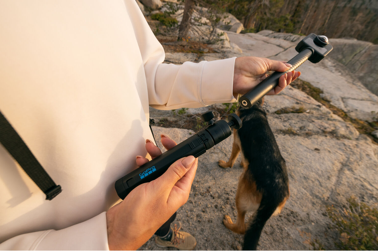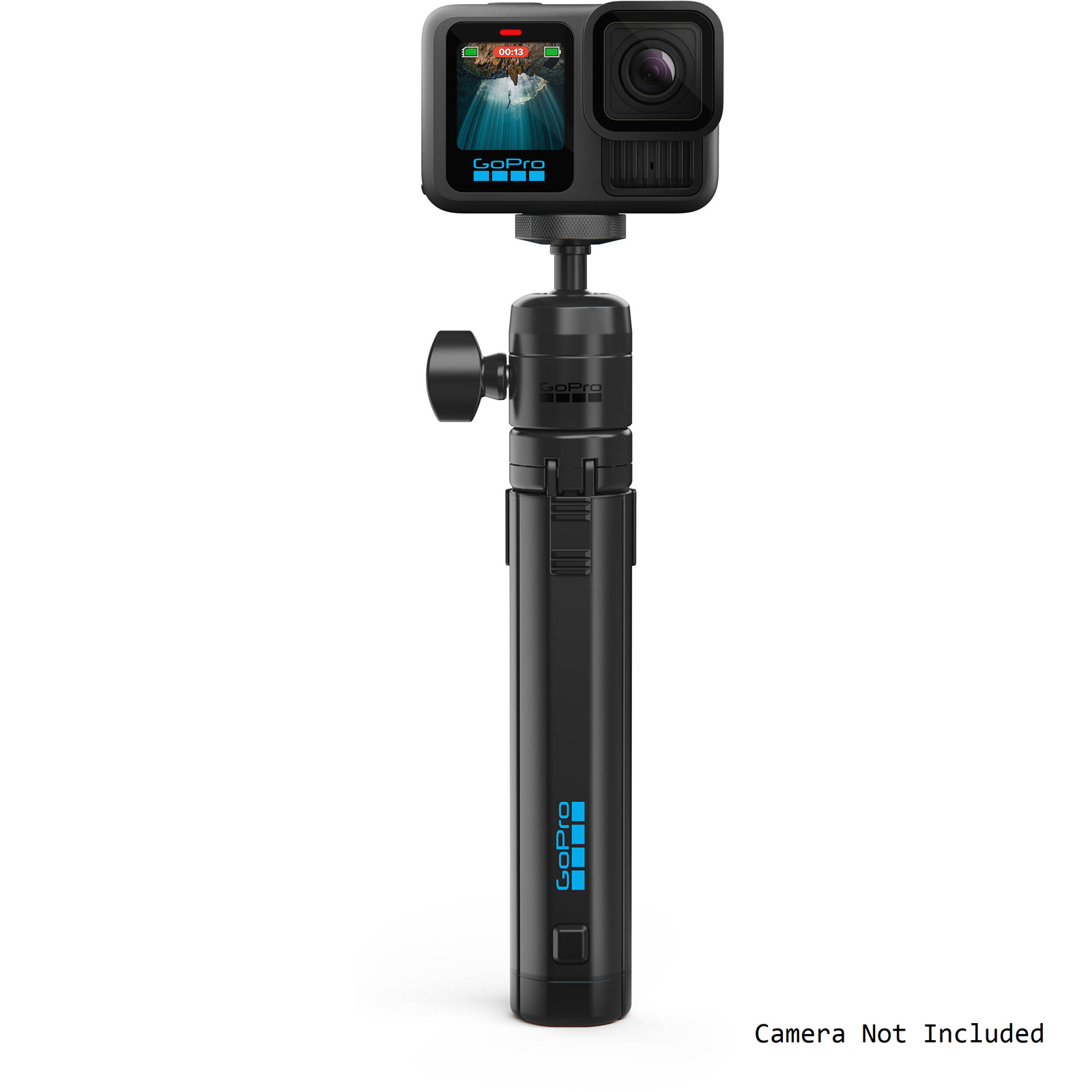 For users seeking even more creative options, the tripod is compatible with standard 1/4-20 extension poles. This compatibility allows for inventive setups, such as invisible pole shots with 360 cameras, further expanding the tripod's usability. Furthermore, with a 1/4-20 tripod adapter (sold separately), the platform supports attachment to older GoPro cameras and accessories, ensuring broad compatibility across multiple generations of devices.