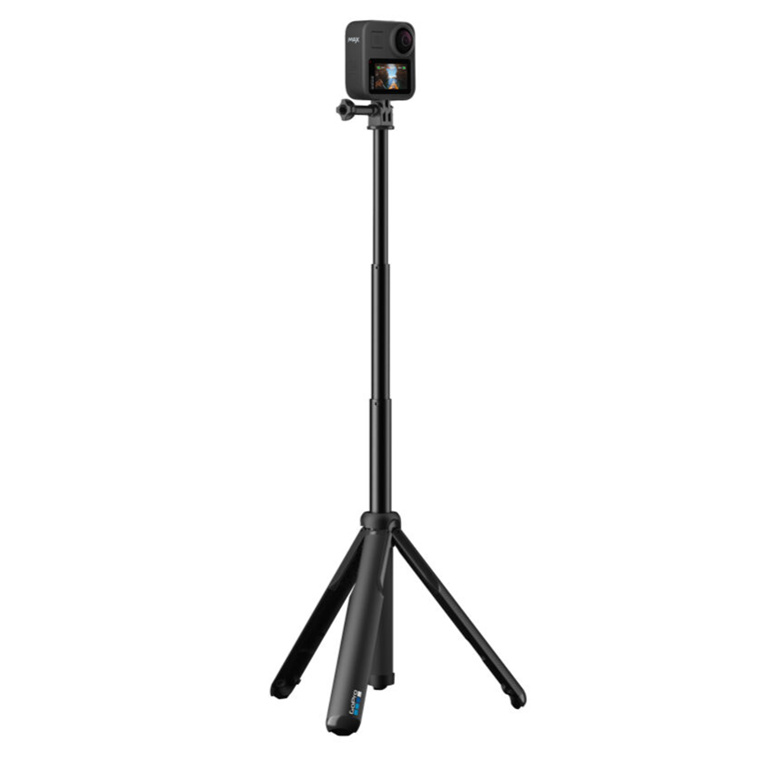 Capture the entire scene with Max Grip + Tripod. This versatile mount was specially designed for shooting 360 footage without the grip in your shot. It also works great with any GoPro camera. Use it as a camera grip, extension pole or quick-deploy tripod for setting up and changing shots on the fly.