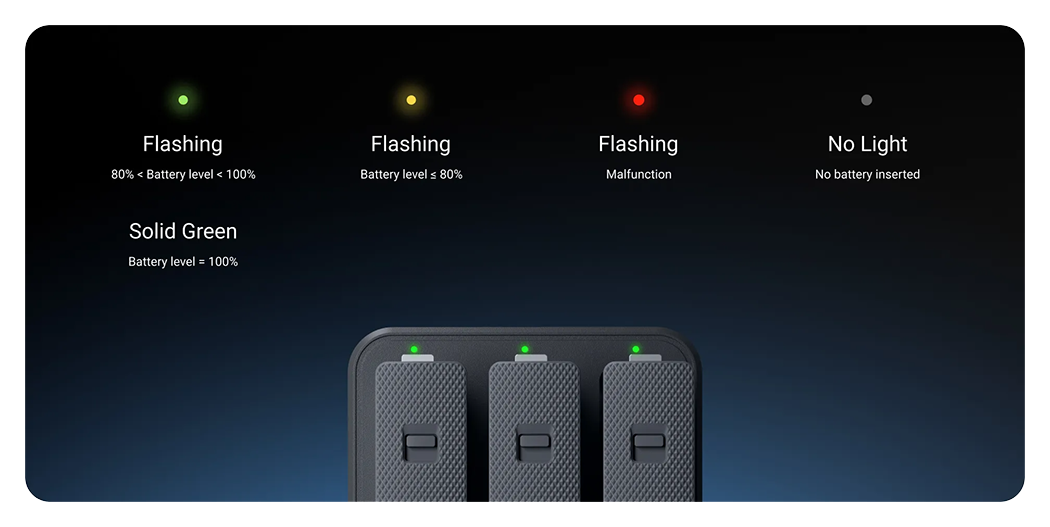 Safely charge up to three batteries at once. Each slot charges independently to prevent overcharging. Supports PD fast charging, getting your battery to 80% in 26 minutes and 100% in just 43 minutes.