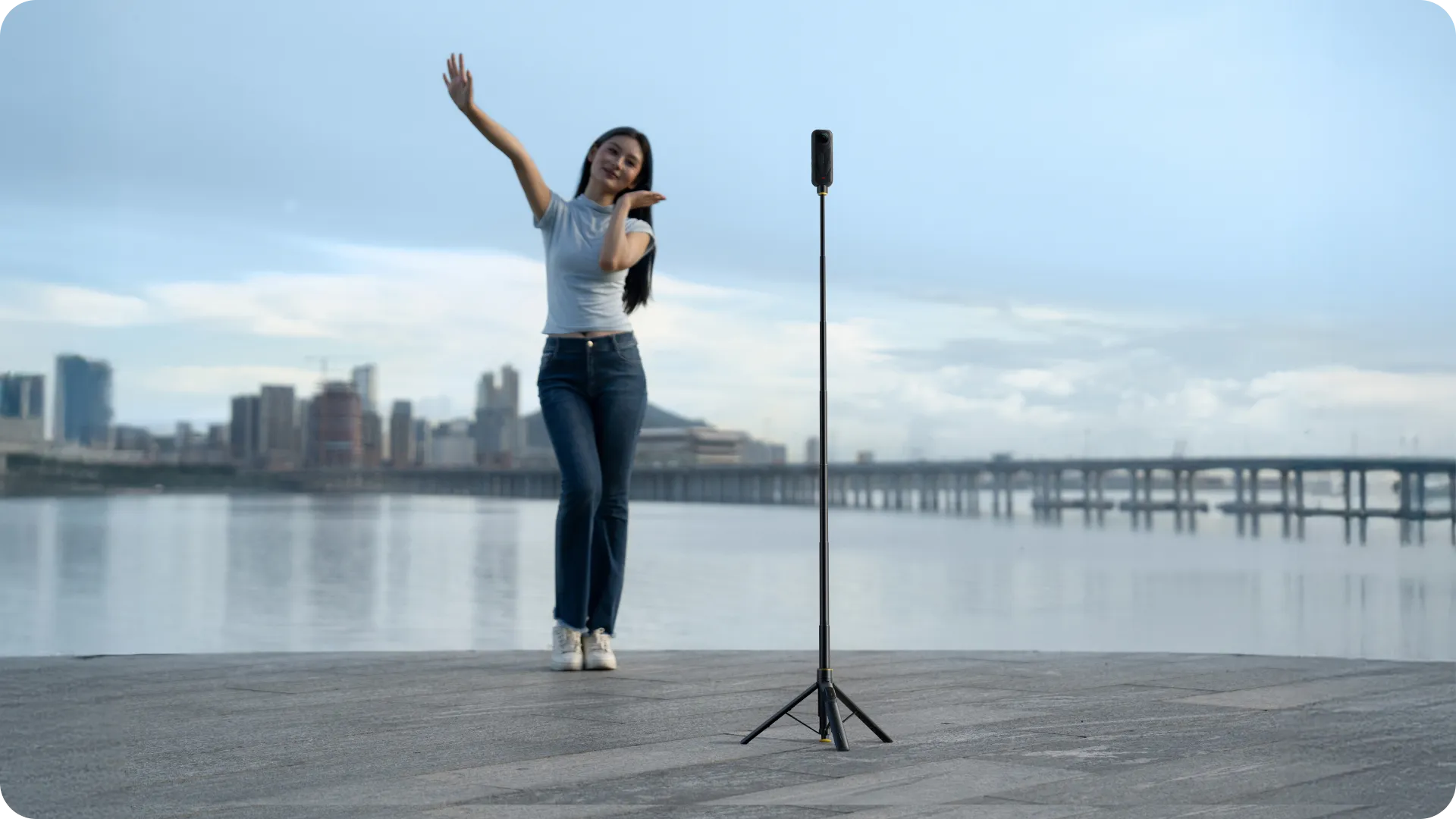 Lightweight and versatile. Use it as a handheld selfie stick or a freestanding tripod.