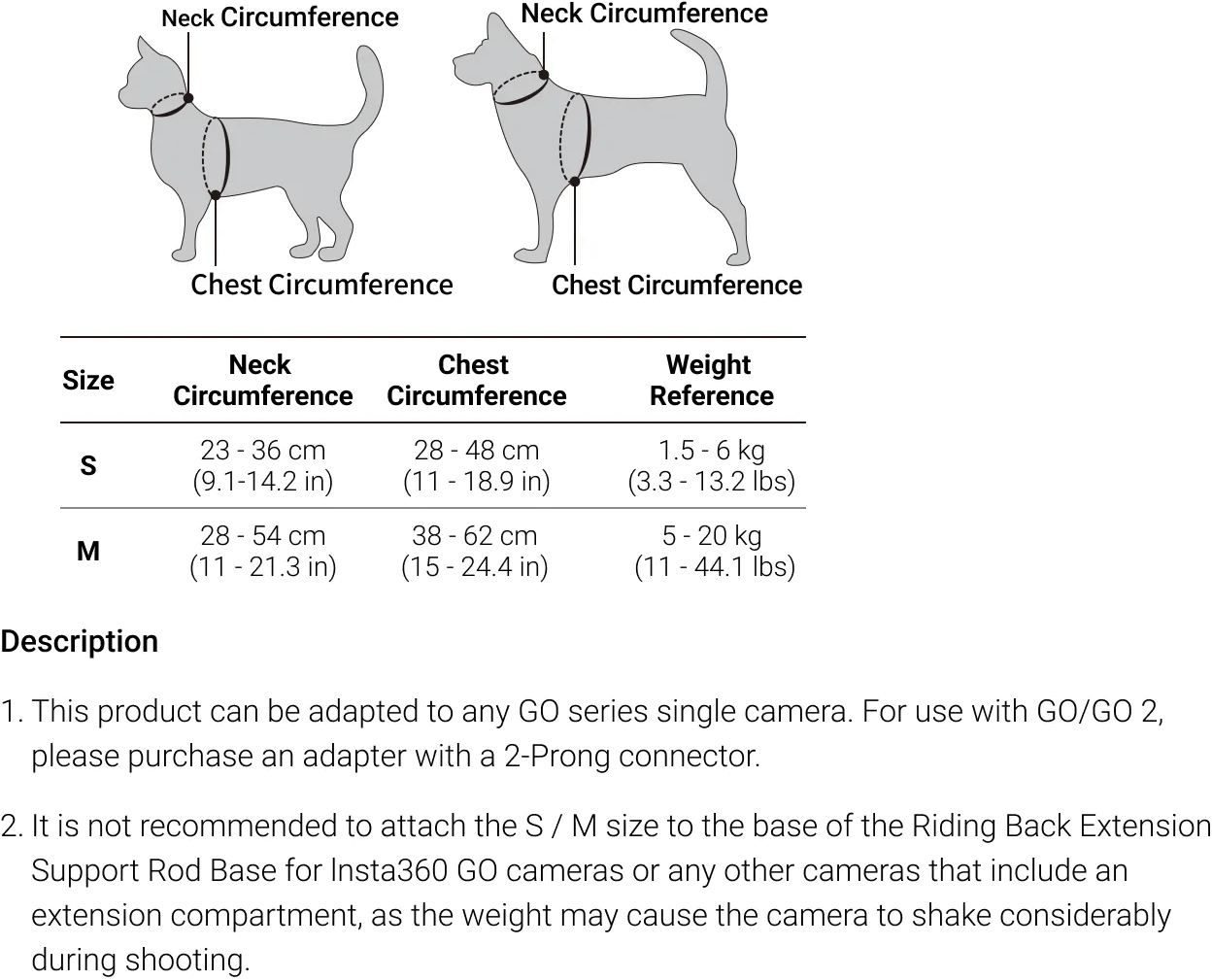 Insta360 Pet Harness Mount Size S For GO 3S