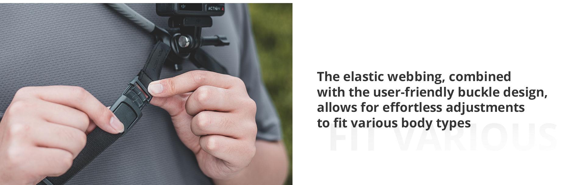 - Chest fixing strap ensures stable filming during active movements.