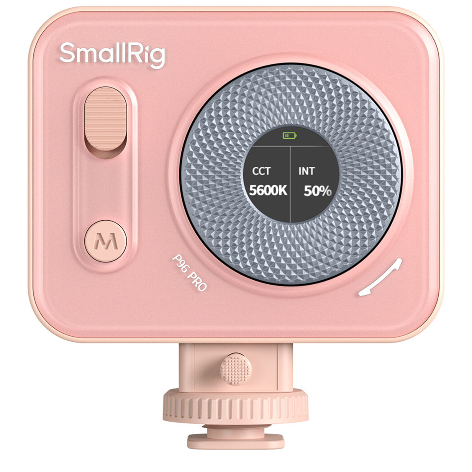 As a second-generation entry in the Vibe LED series, this pink SmallRig Vibe P96 Pro Mini LED Video Light retains the iconic ring-shaped metal stepless knob design and includes an embedded color LCD screen for clear parameter displaying, such as color temperature and brightness, allowing for easy one-handed adjustment. The integrated quick release cold shoe base enables seamless transitions between various lighting setups, significantly enhancing flexibility and efficiency.