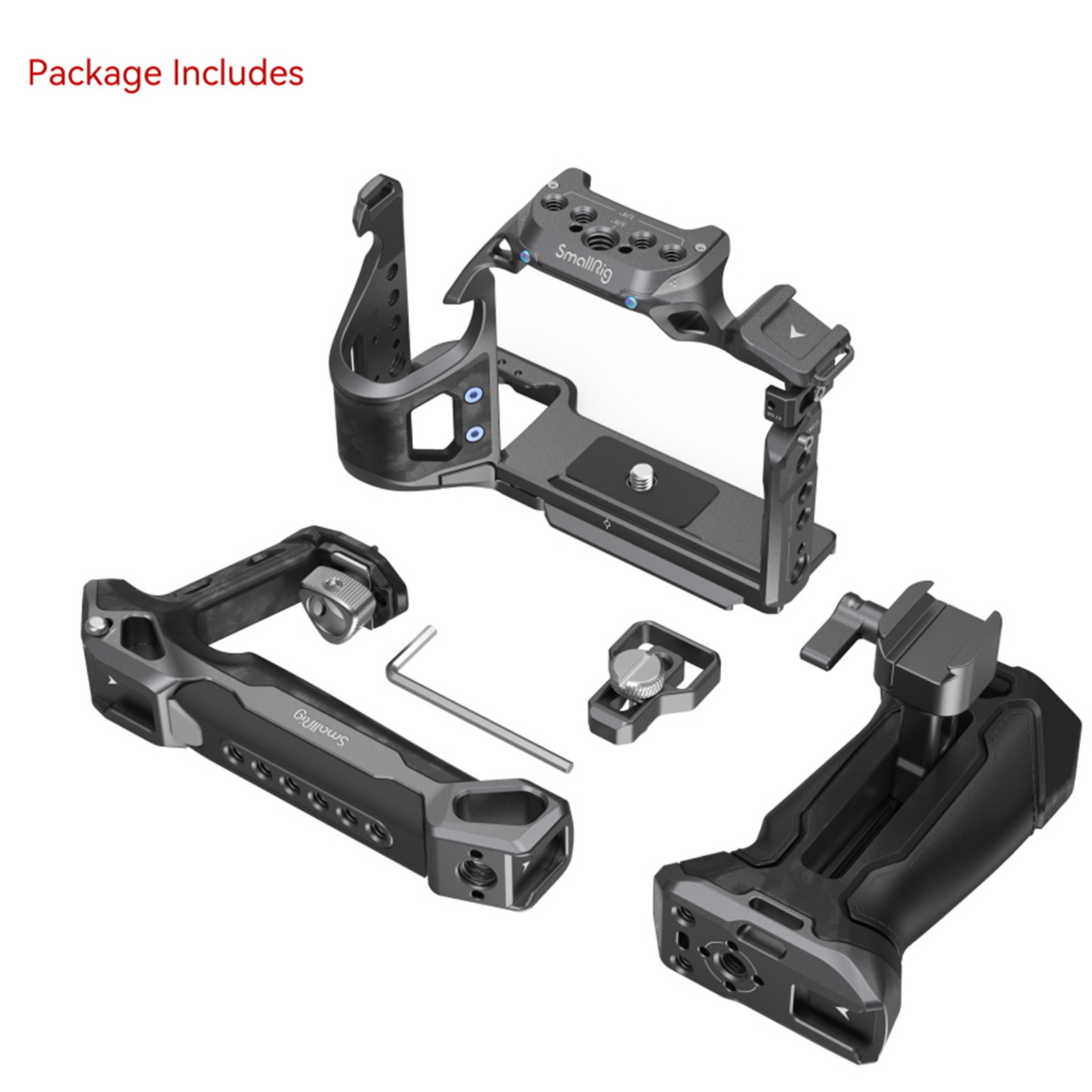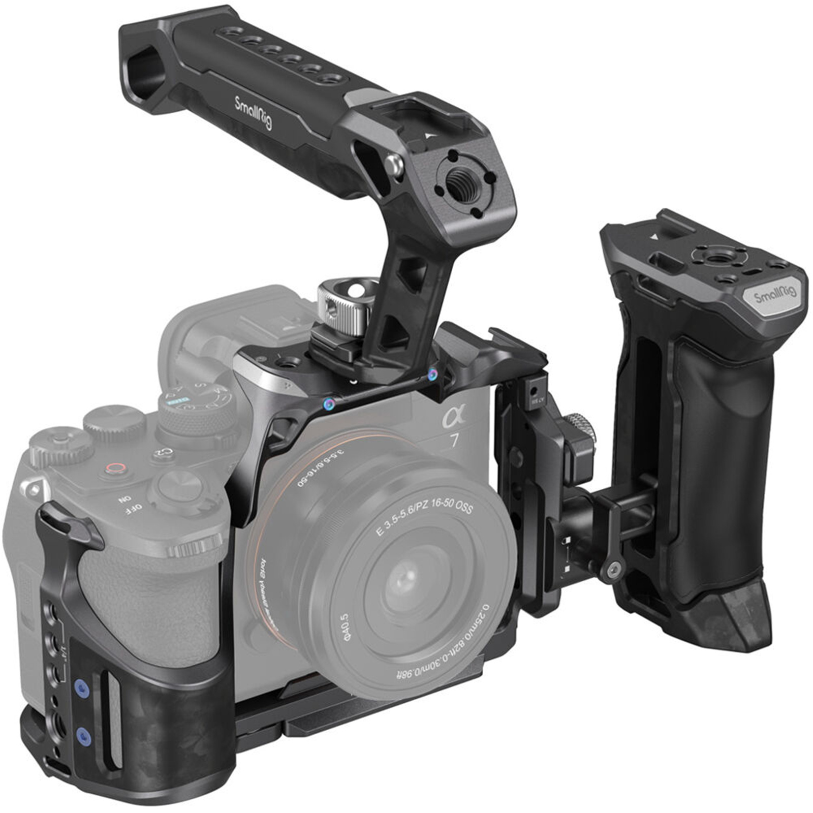 Compatibility: SmallRig Advanced Kit is designed for Sony Alpha 7R V / Alpha 7 IV / Alpha 7S III. It includes a cage, a top handle, a side handle and a clamp for HDMI cable. The advanced kit can reduce burdens on arms when handheld shooting and increase stability.