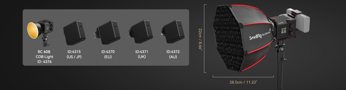 - Compatibility with RC 60B COB Light: The mini parabolic softbox is compatible with RC 60/100 COB light.