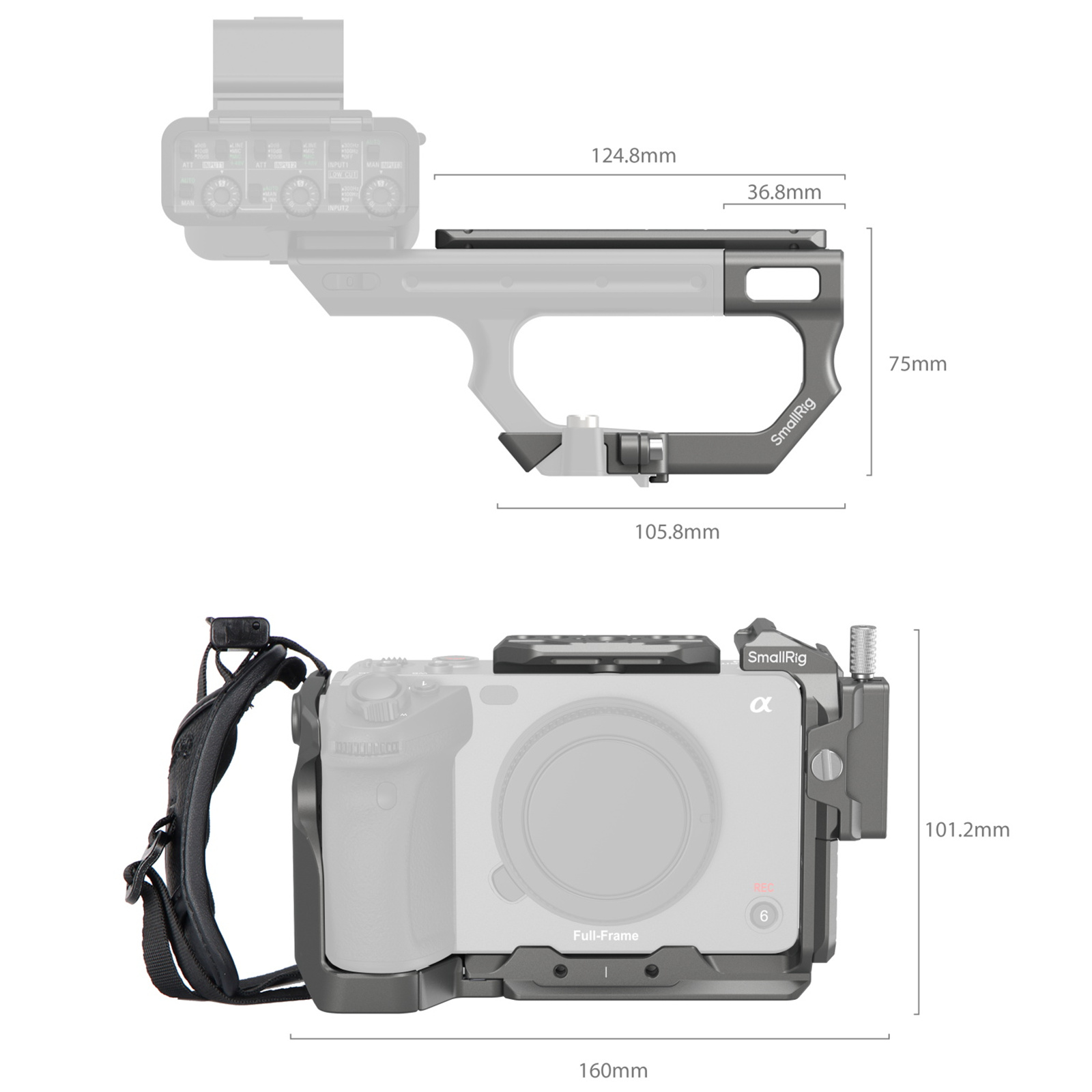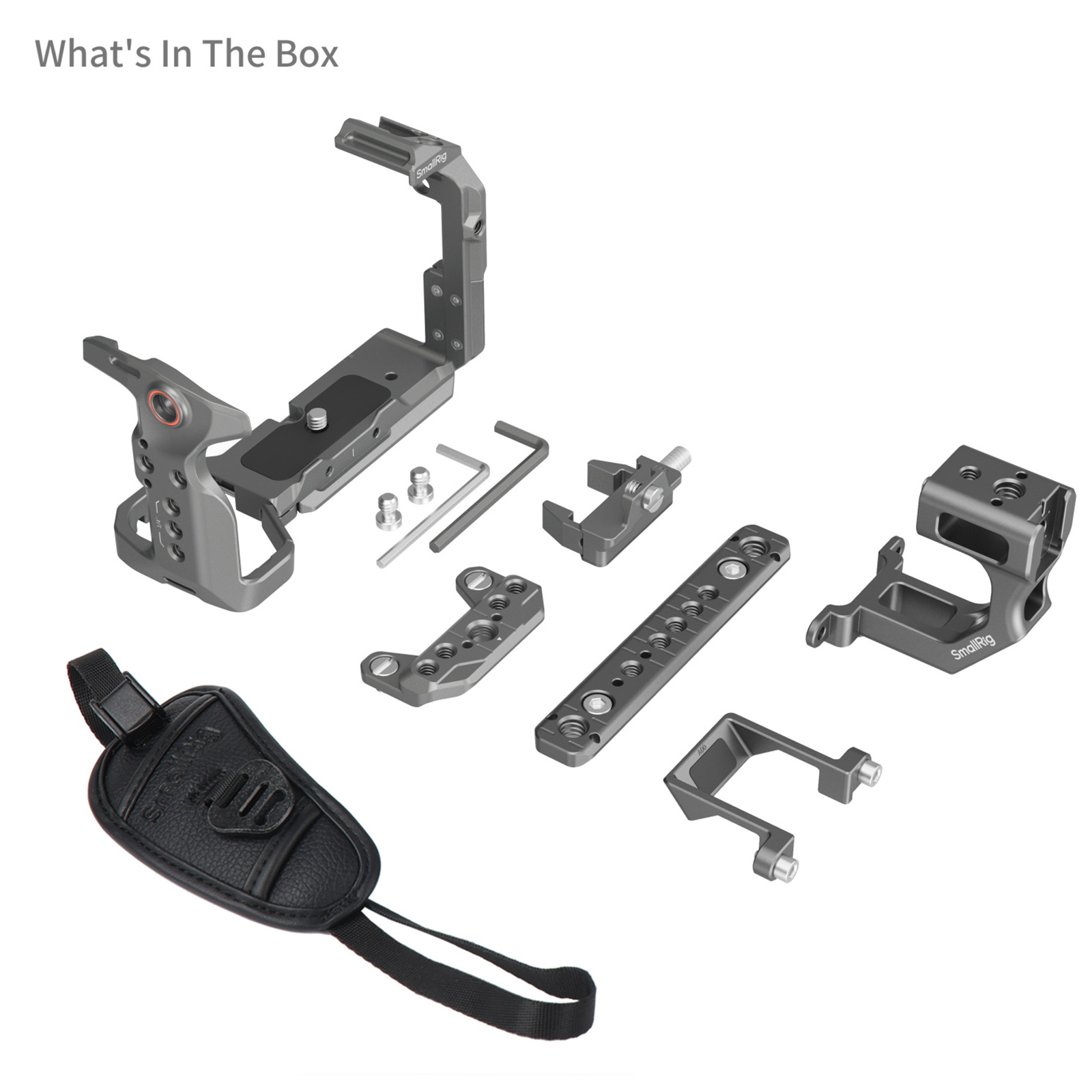 - Sony FX30/FX3 Handheld Cage Kit: Includes a hand strap for shooting convenience; Stylish gunmetal gray color.