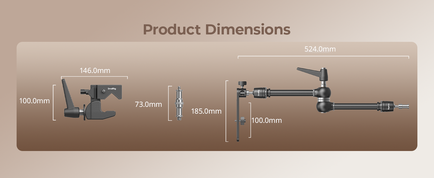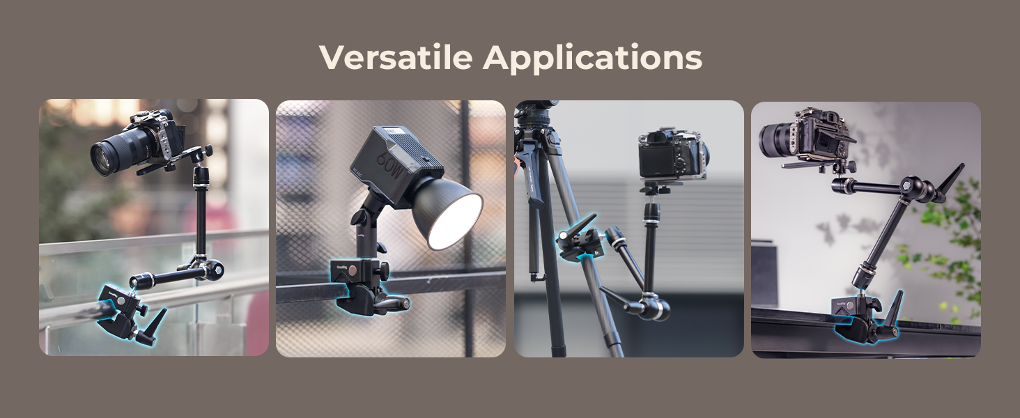 Magic arm supports up to 3kg (6.6lb), super clamp holds up to 15kg (33.1lb) for stable and reliable mounting;