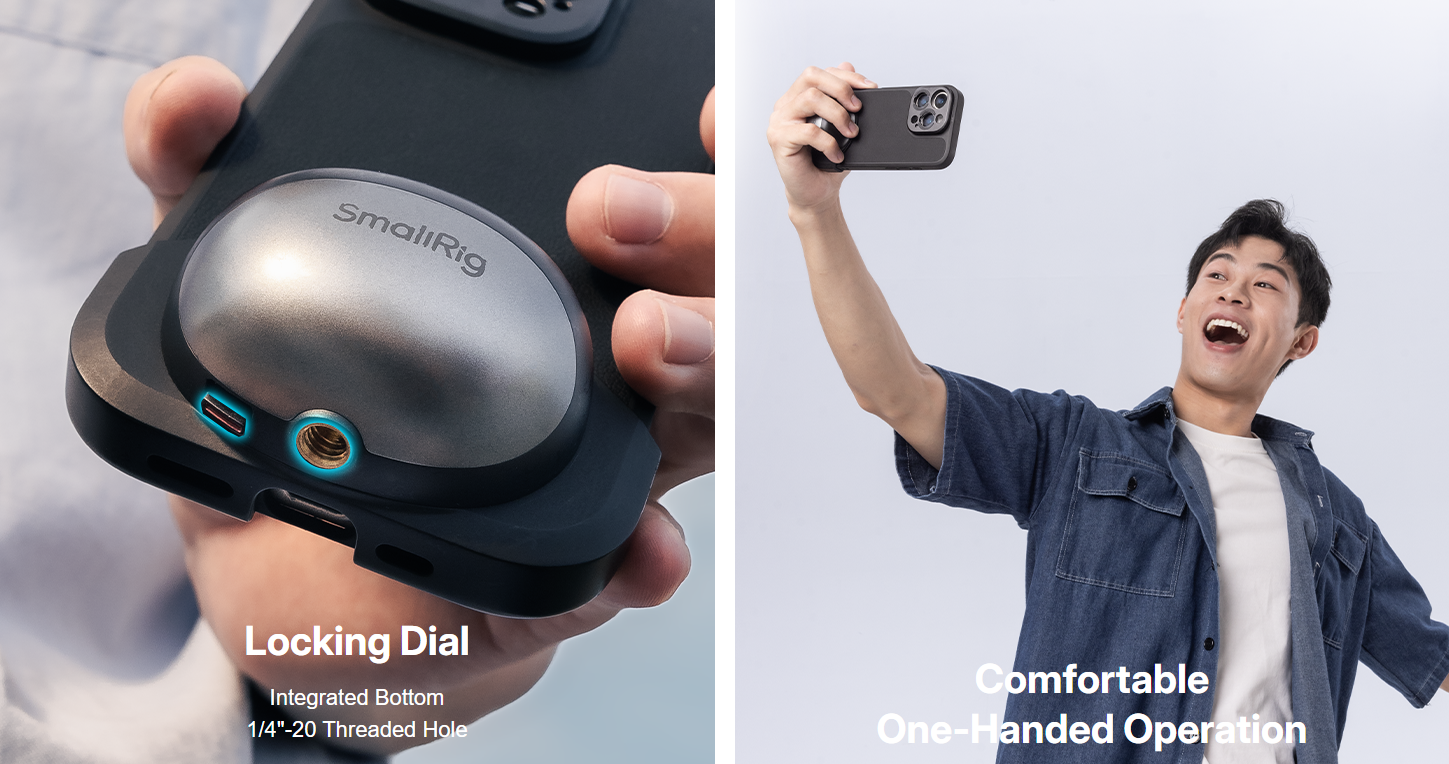 - Enhanced Camera Control with the Phone CapGrip: Specifically designed for the iPhone 16 Pro (ID 4988) and iPhone 16 Pro Max (ID 4987), this grip elevates your shooting experience by providing improved tactile feedback and control over the Capture Button, along with additional mounting options via 1/4"-20 threaded holes.