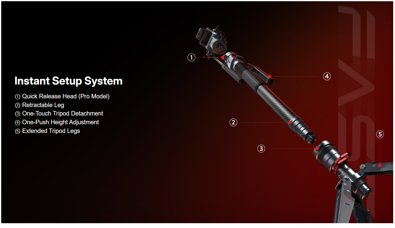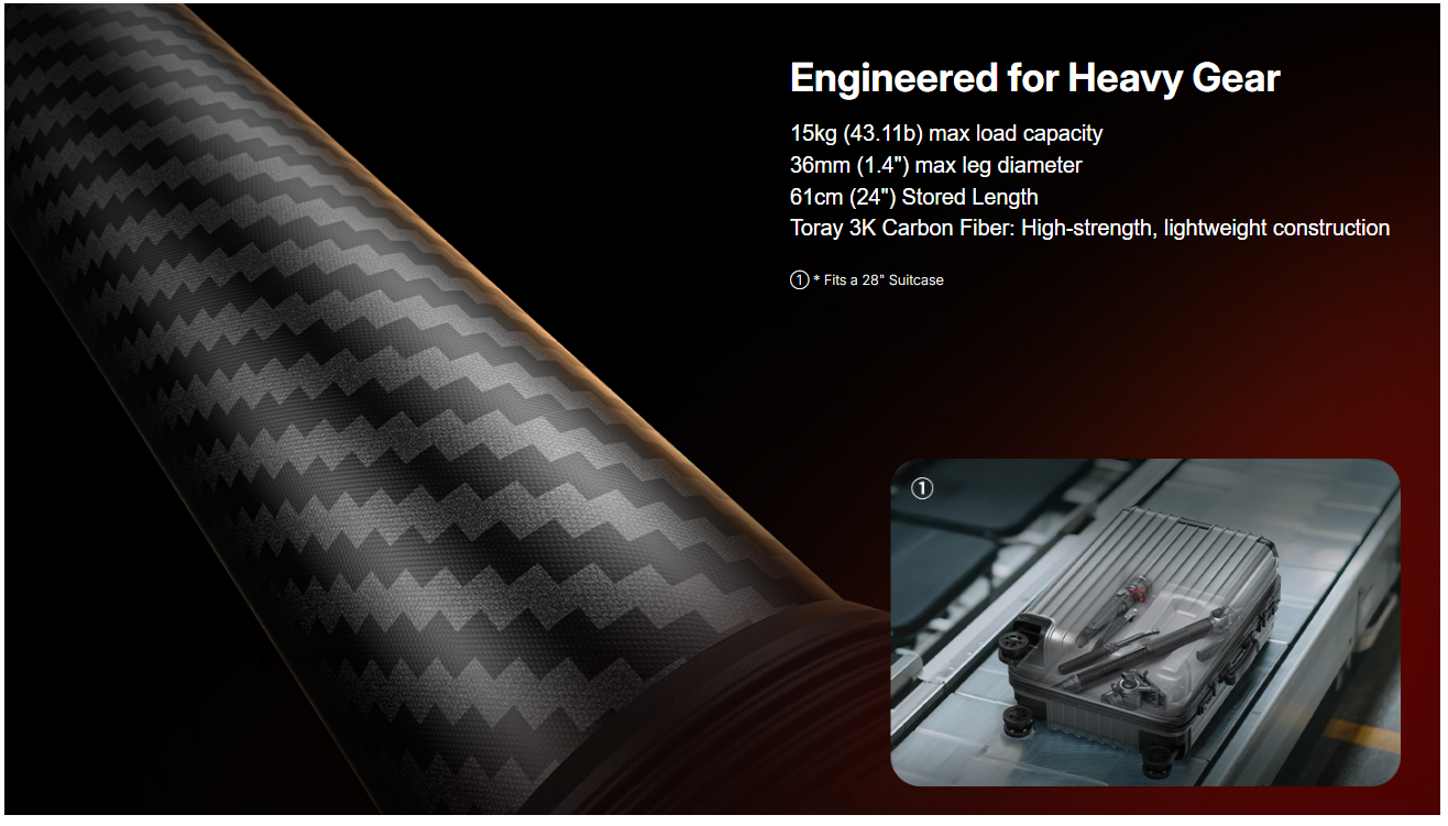 - Shoot Stable on the Move: Carbon fiber legs absorb vibration for sharper handheld shots
