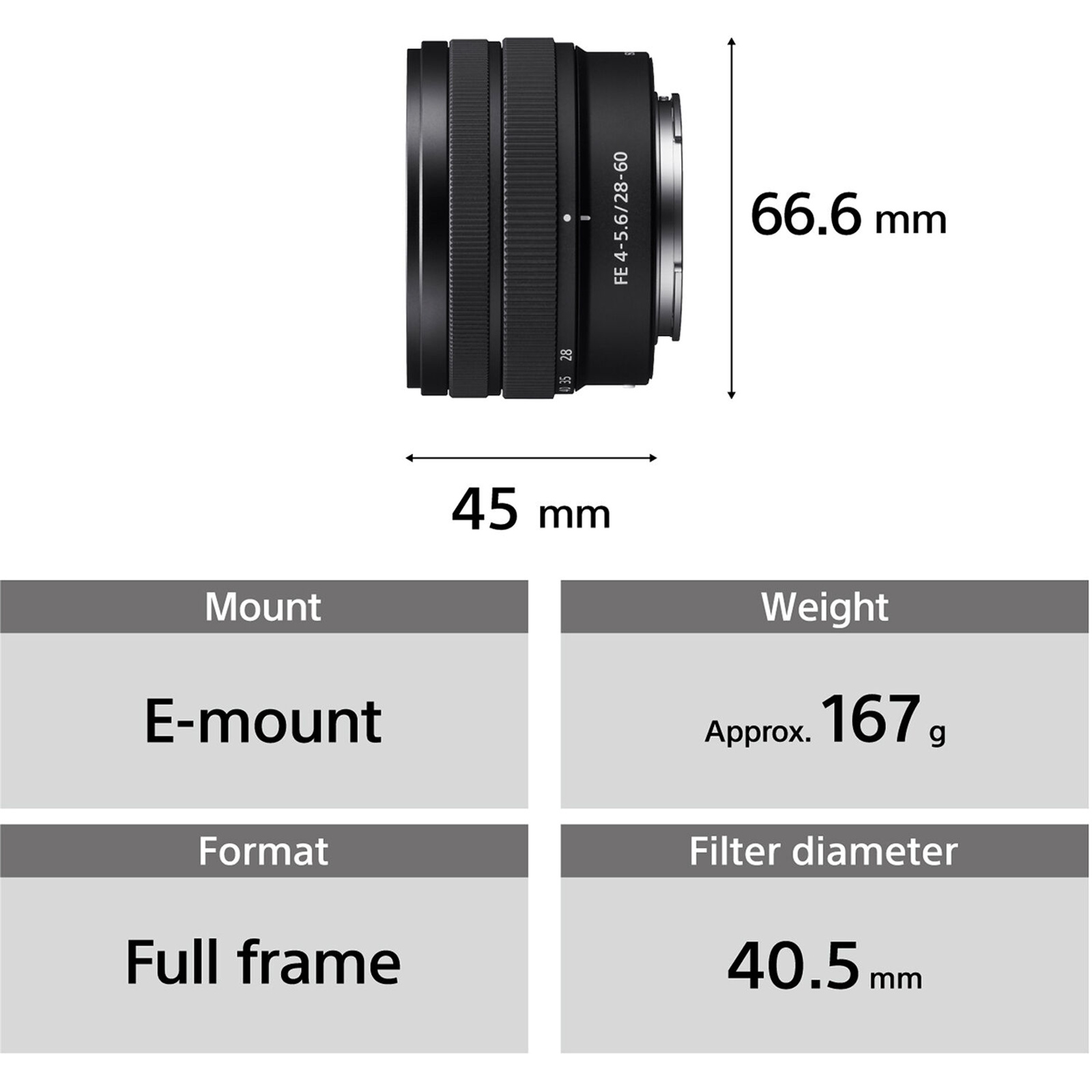 Sony FE 28-60mm f/4-5.6 Lens E-Mount Lens/Full-Frame Format - Aperture Range: f/4 to f/32 - Linear AF Motor, Internal Focusing
