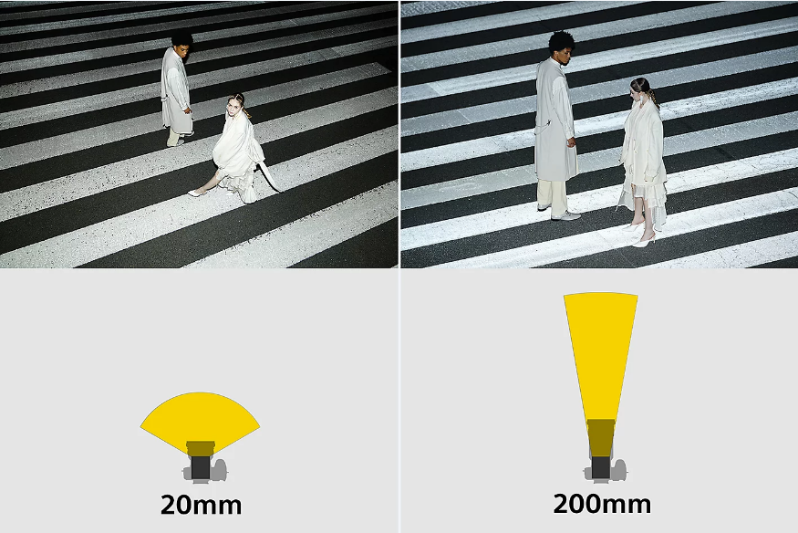 The flash illumination angle is automatically adjusted to match the focal length of the lens used over a 20-200mm range. Light distribution is also adjusted for optimum illumination with full-frame or APS-C format.