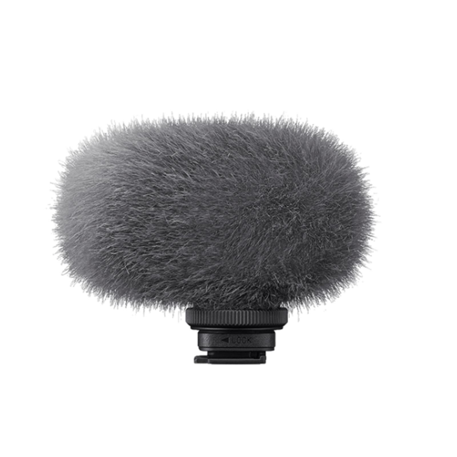 The ECM-G1 comes with an easily detachable wind screen that can reduce wind noise when shooting outdoors under windy conditions.