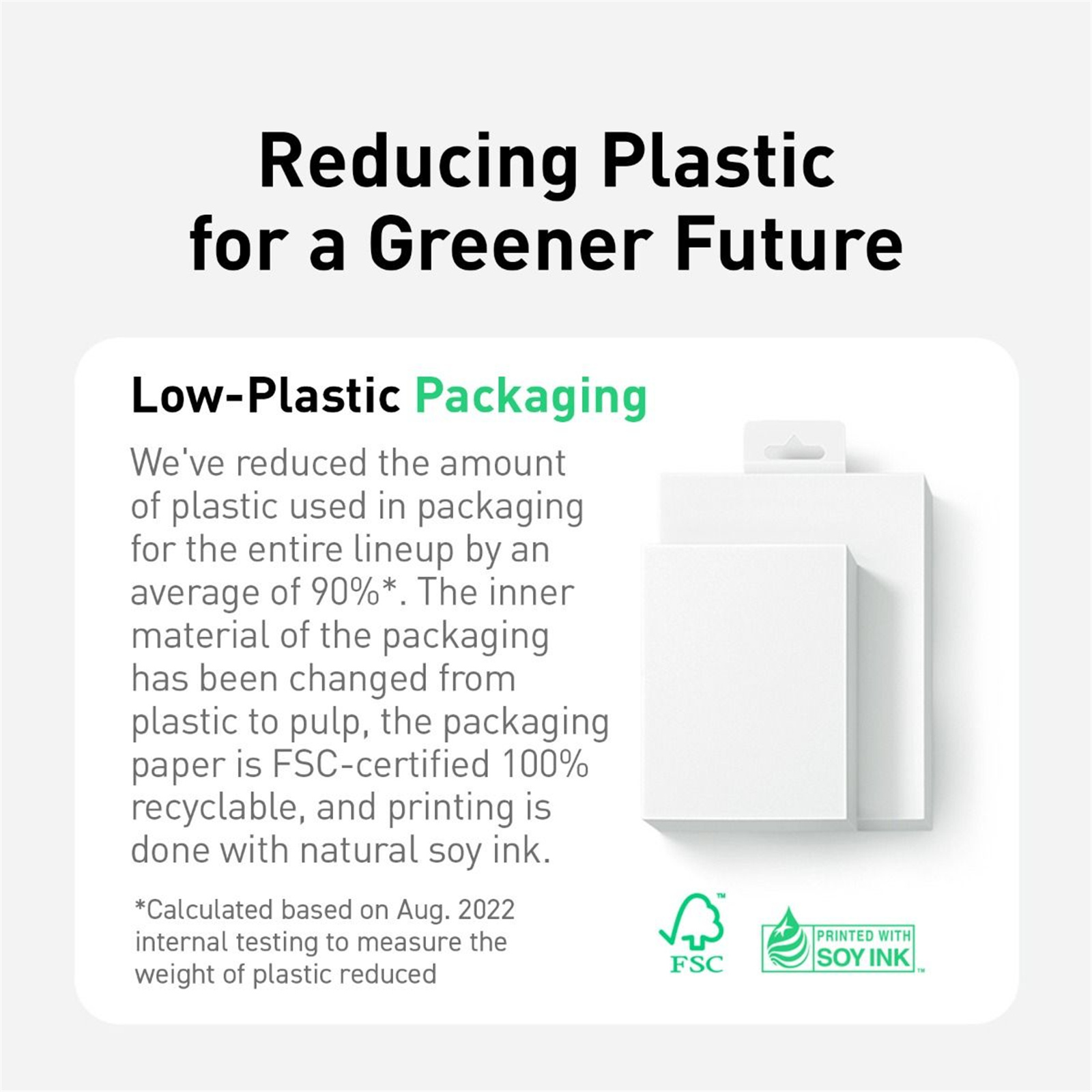 The exterior of the cable body and the connector casing is constructed with bio-based nylon, while the packaging is made of 100% recyclable paper and printed with soy ink.