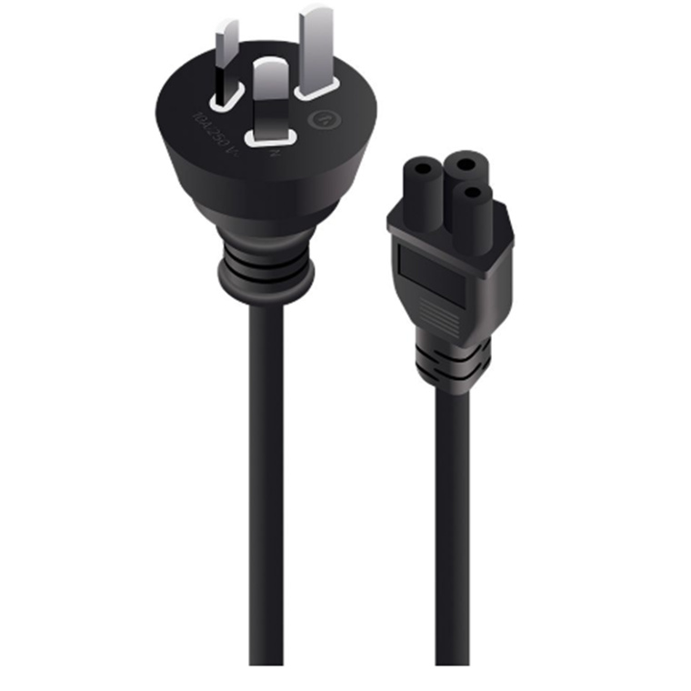 This ALOGIC Aus 3 Pin Mains Plug to IEC C5 - Male to Female Clover Leaf Power Cable is 3-core power cables used on mostly compact Power Supplies found in laptops and other small appliances.