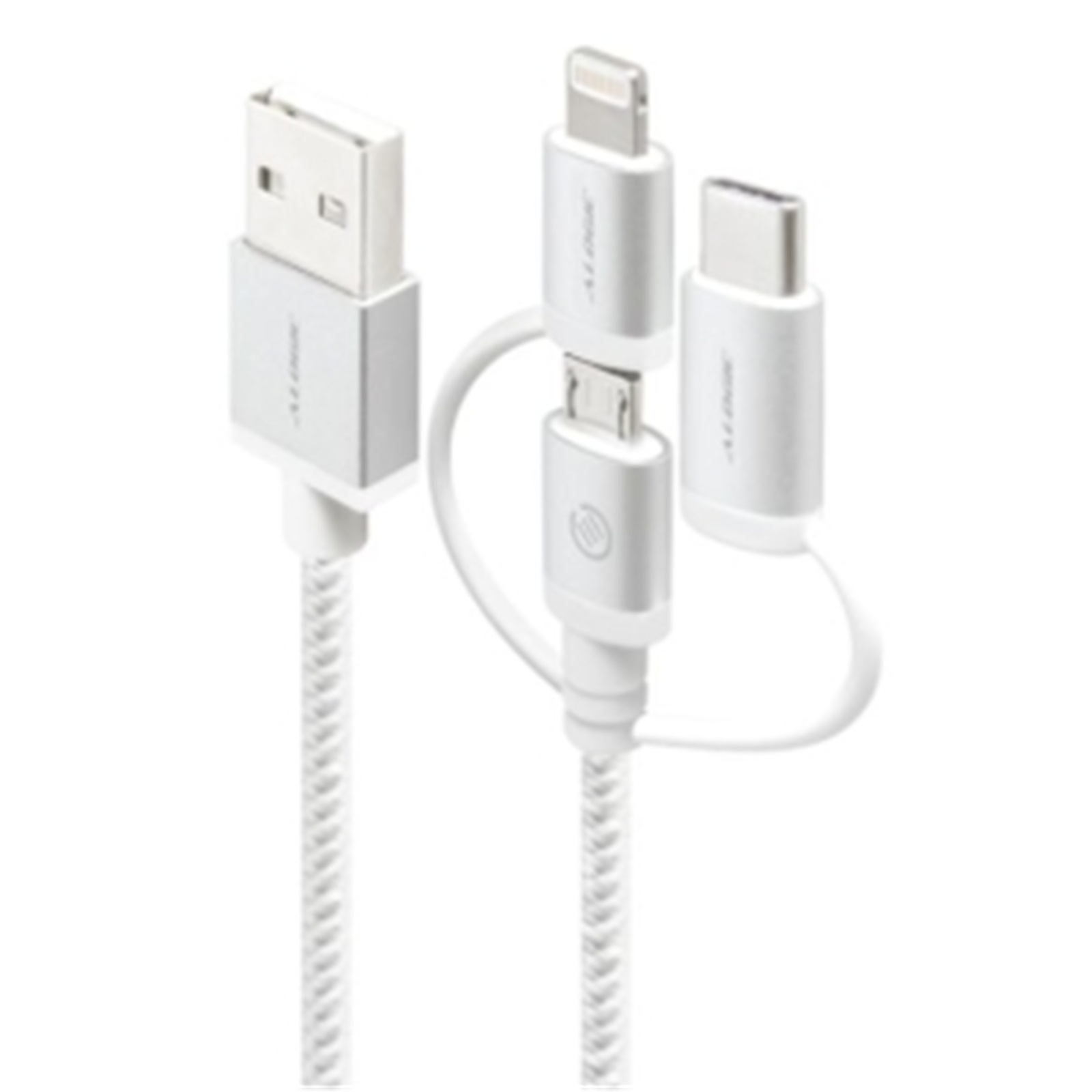 - For added durability and style, the Alogic 30cm 3-in-1 Micro USB + Lightning + USB-C Charge & Sync Cable features an aluminium connector housing, braided nylon sleeved cable, and precision laser welding.