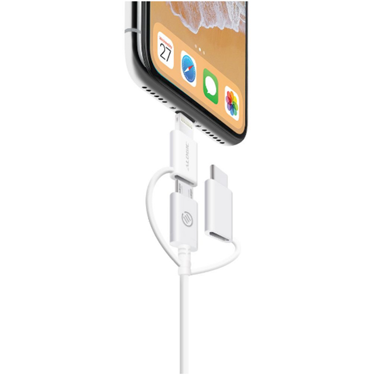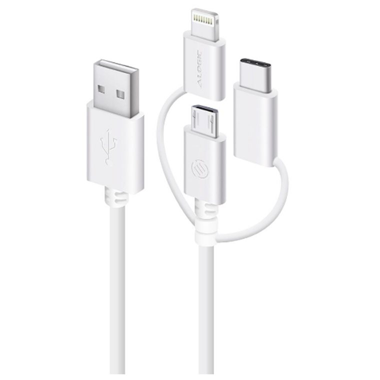 Alogic 3-in-1 Charge & Sync Cable - Micro USB + Lightning + USB-C - White - 0.3m