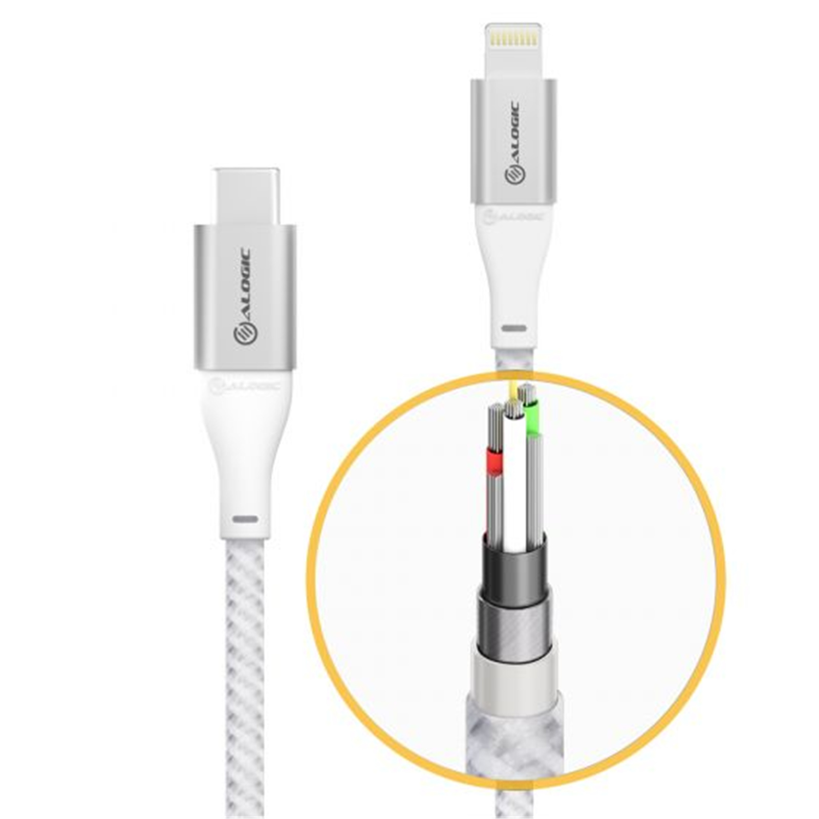 ALOGIC's SUPER Ultra USB-C to lightning cable is made from the highest-quality materials for the most elegant design and ultimate durability. The inner wiring of the cable is reinforced with strong synthetic fibre for maximum strength, which combined with a flexible nylon double braided jacket provides protection against all types of wear and tear. This SUPER ultra-series cables is are further enhanced by smart design features such as extended strain relief and aluminium housing for the connectors. All these together ensures that the finished product can withstand even the most demanding routines, and perform beyond expectations throughout its lifespan.