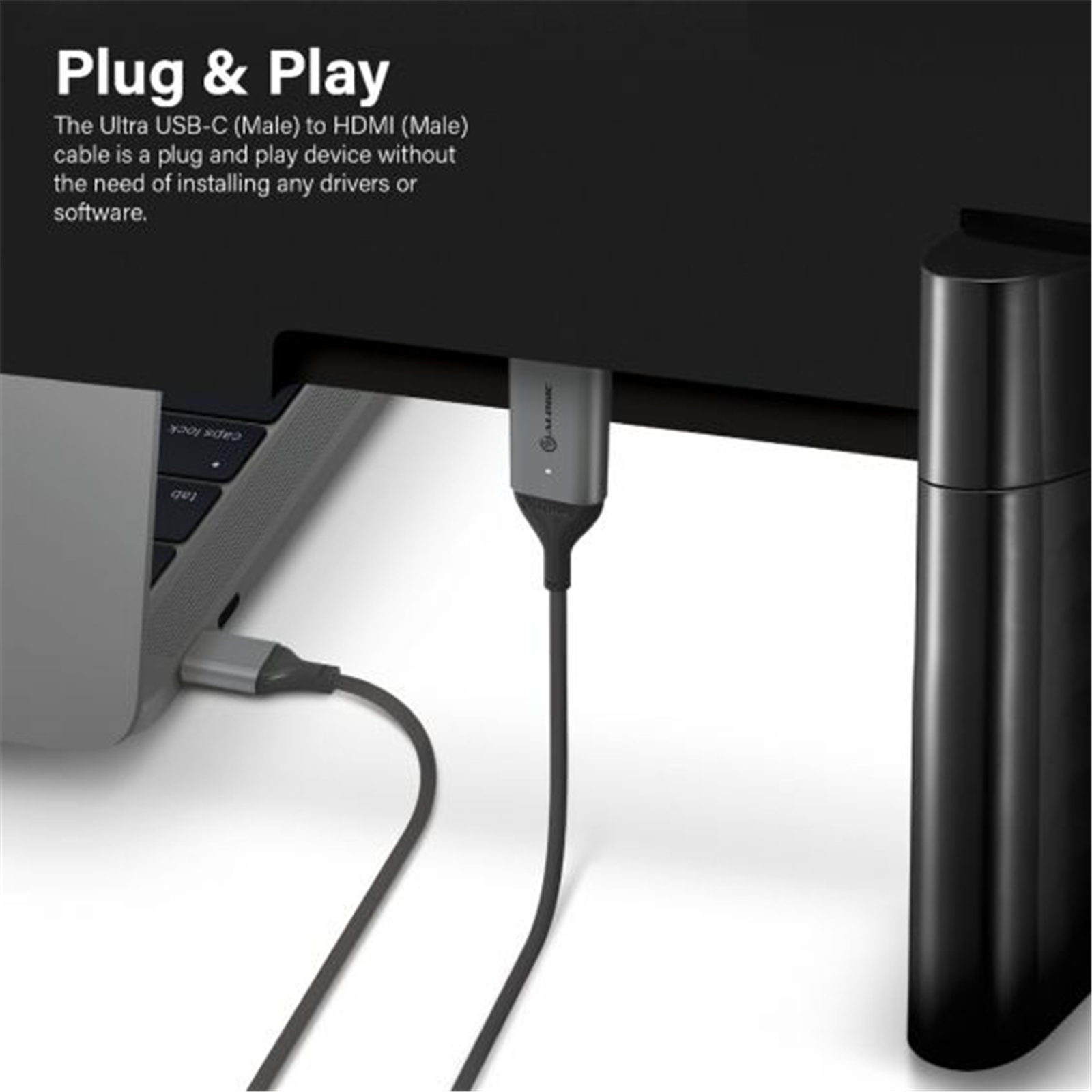 ALOGIC Ultra USB-C (Male) to HDMI (Male) Cable is designed to output 4K (3840 x 2160) @60Hz resolutions from a USB-C enabled device to your HDMI compatible monitor, projector or TV. The cable removes any need for an extra adapter and provides a direct connection between your computer/tablet/phone to a display like TV, monitor, projector etc.