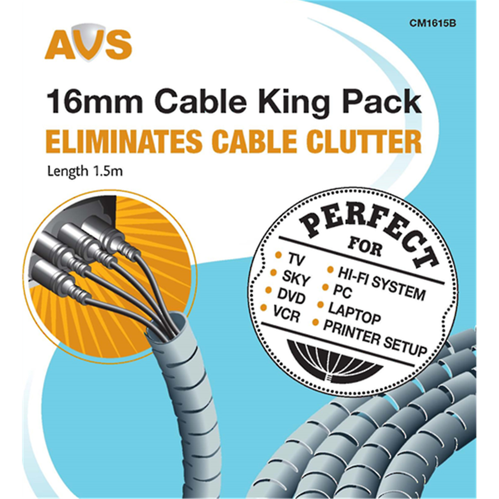 AVS CM1615B Cable Management Pack 16mm, 1.5m Black Finish