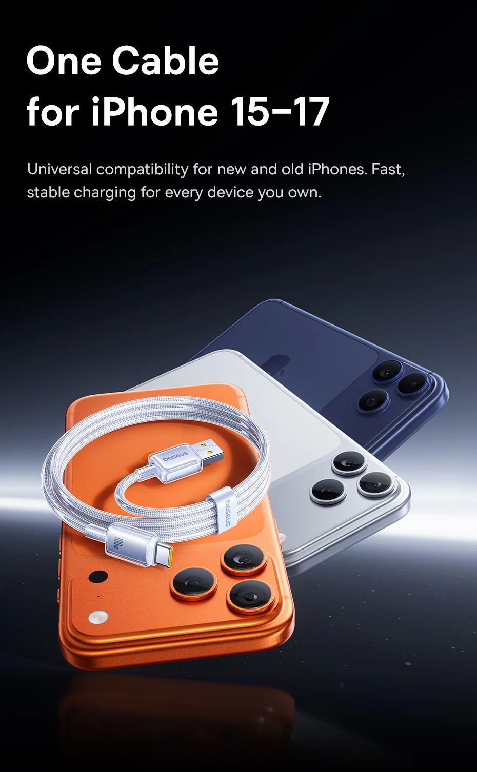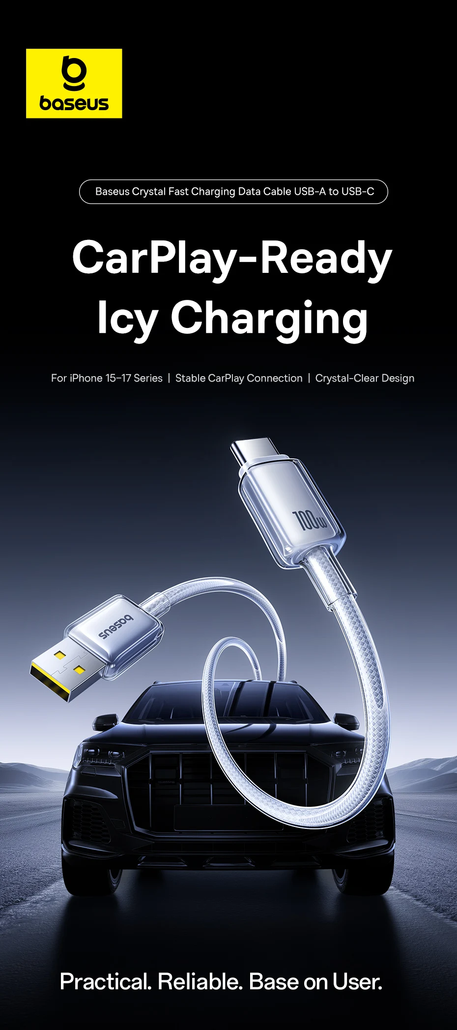 Experience the ultimate blend of speed, durability, and style with the Baseus Crystal 100W Fast Charging Cable. Engineered for the latest iPhone 15-17 series, it delivers ultra-fast 100W charging, a rock-solid CarPlay connection, and a revolutionary cooling system to protect your device. Its crystal-clear design and military-grade durability make it the most reliable and aesthetically pleasing cable for your car and daily use.