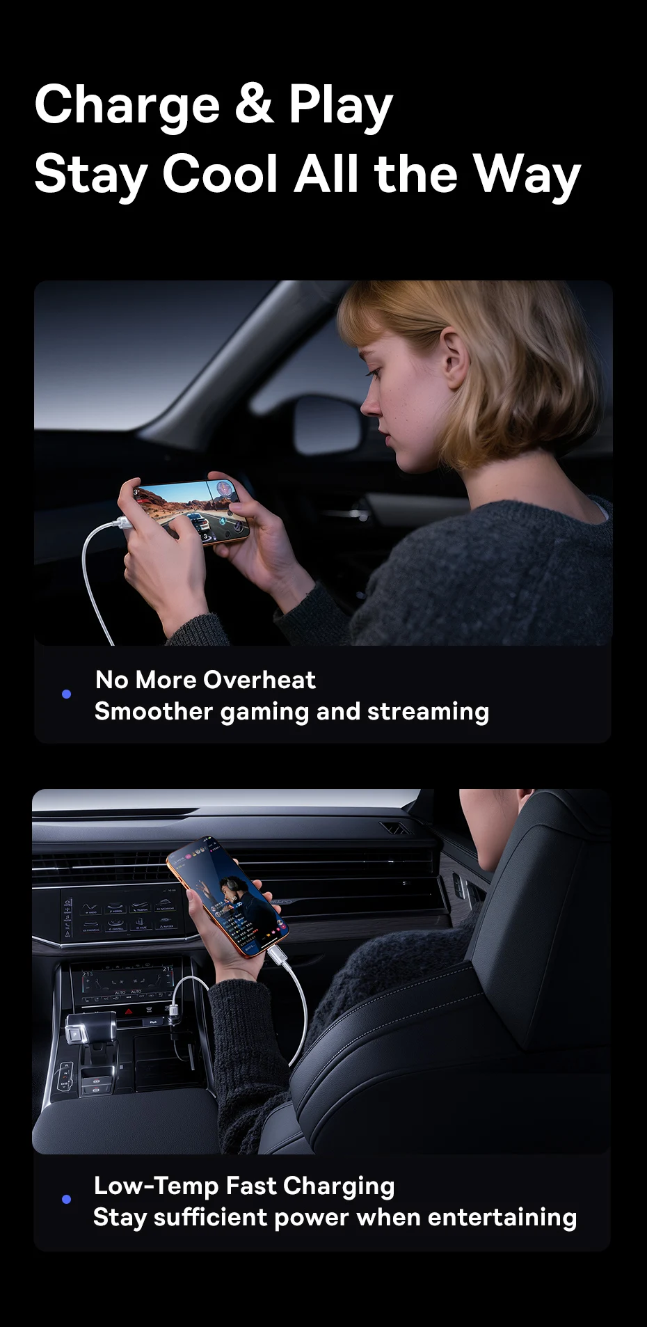 - Advanced Cooling Technology: Innovative 4-layer cooling system with a temperature-control chip reduces heat by up to 23°C for safer, more efficient fast charging.