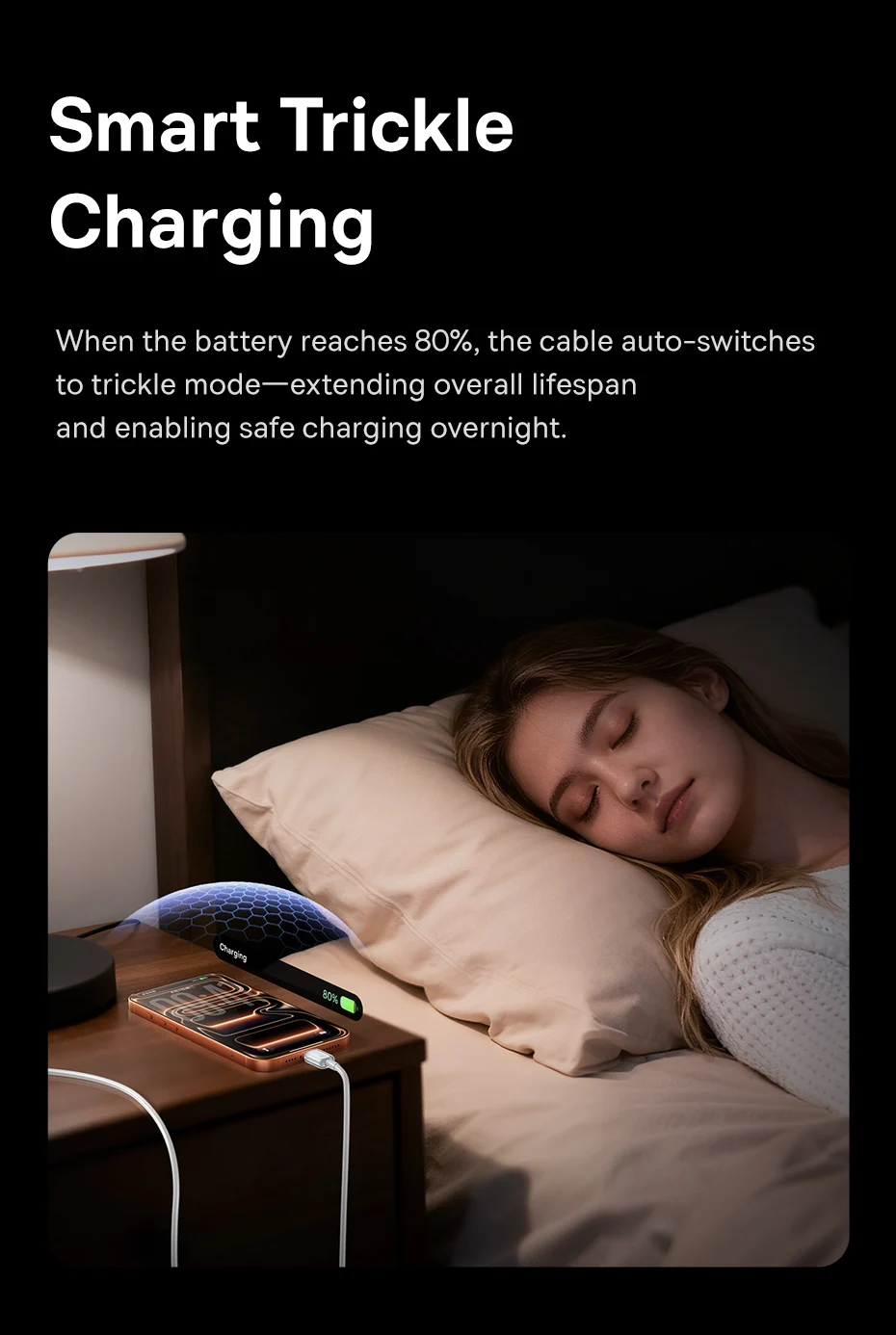 - Smart Trickle Charging: Automatically switches to a protective trickle mode at 80% battery to extend your device's overall battery lifespan.
