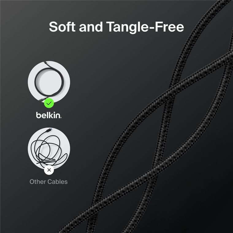 - Built with Belkin PCR braiding that survives 350,000+ bends & 20,000 plug in-and-out cycles[2]
