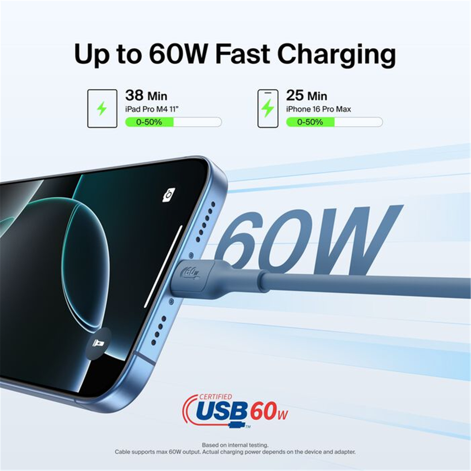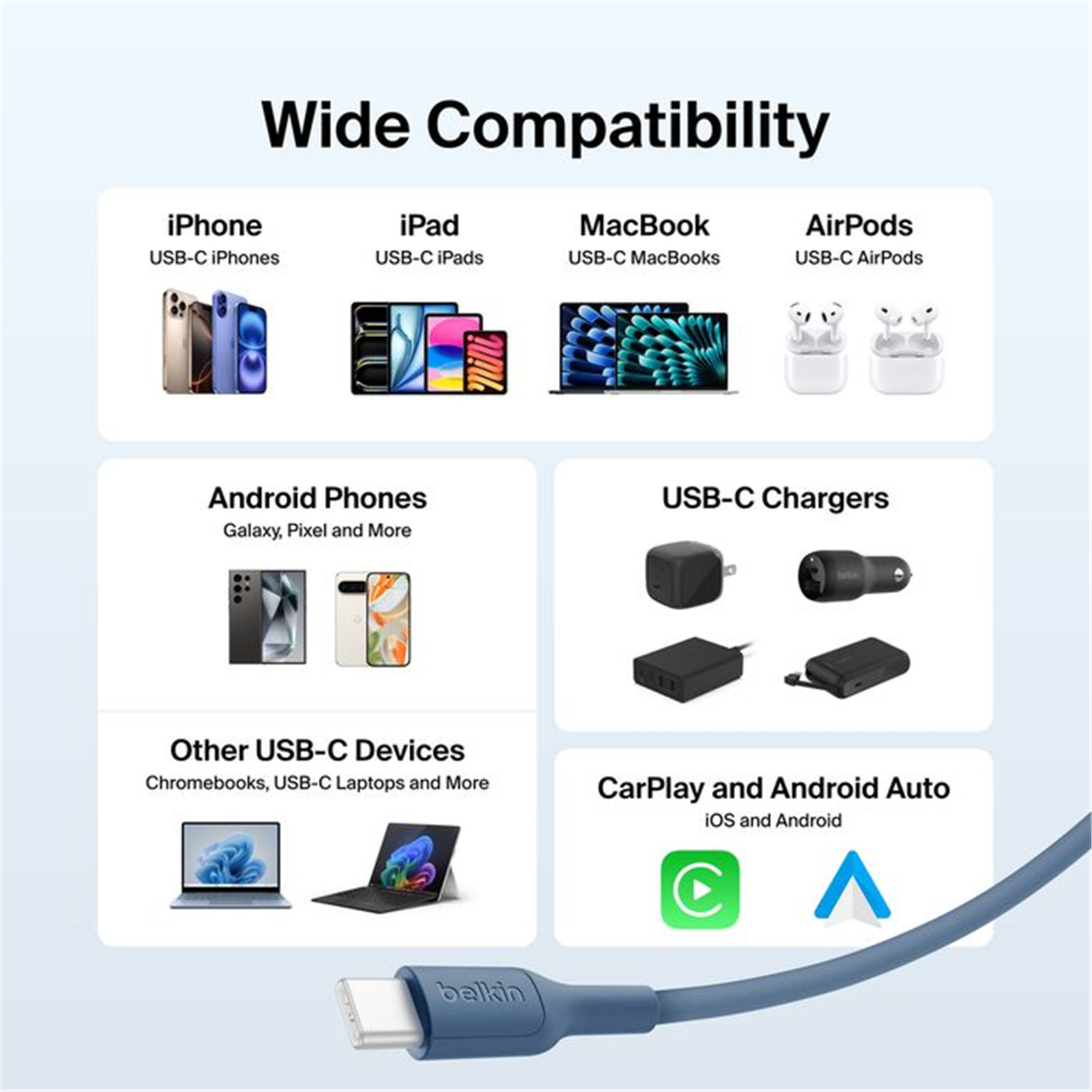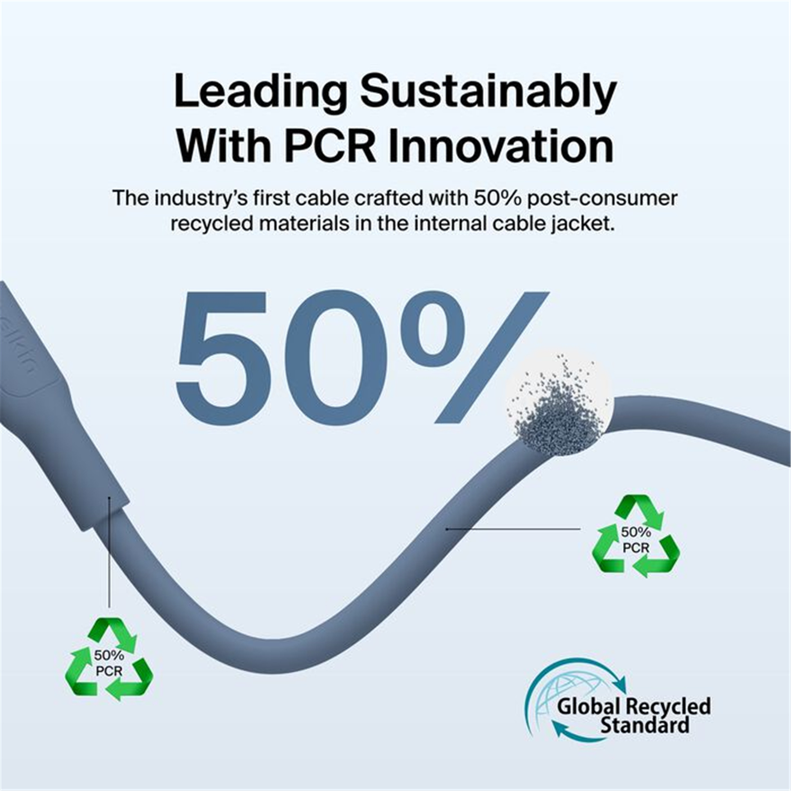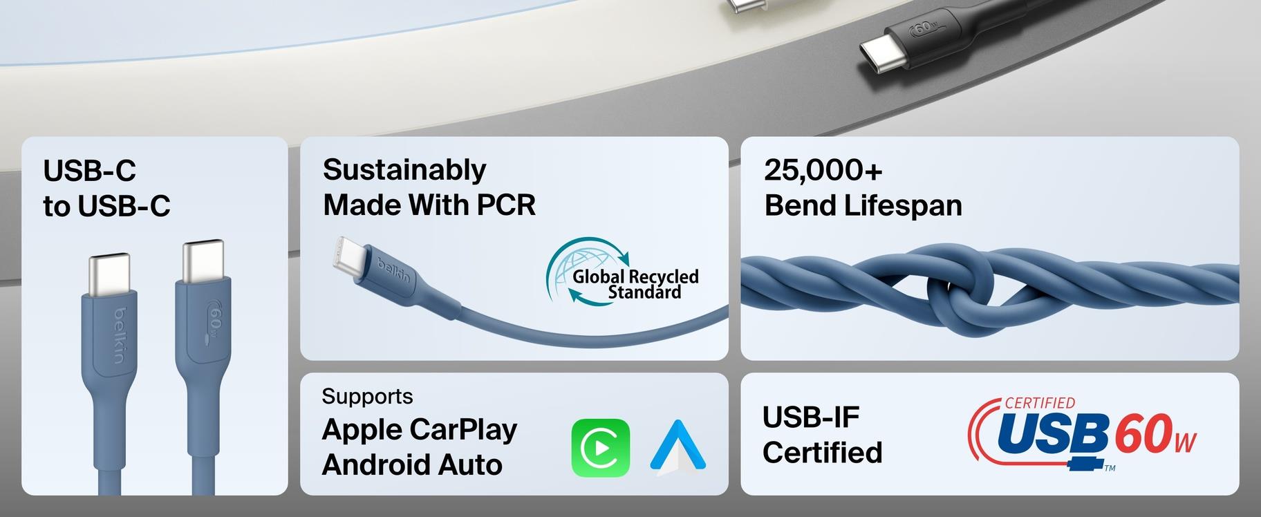 Belkin BoostCharge USB-C to USB-C 60W Cable - 1M ( Blue ) - Certified by Intertek TE-00114861.Made with Post Consumer Recycled (PCR) Materials*